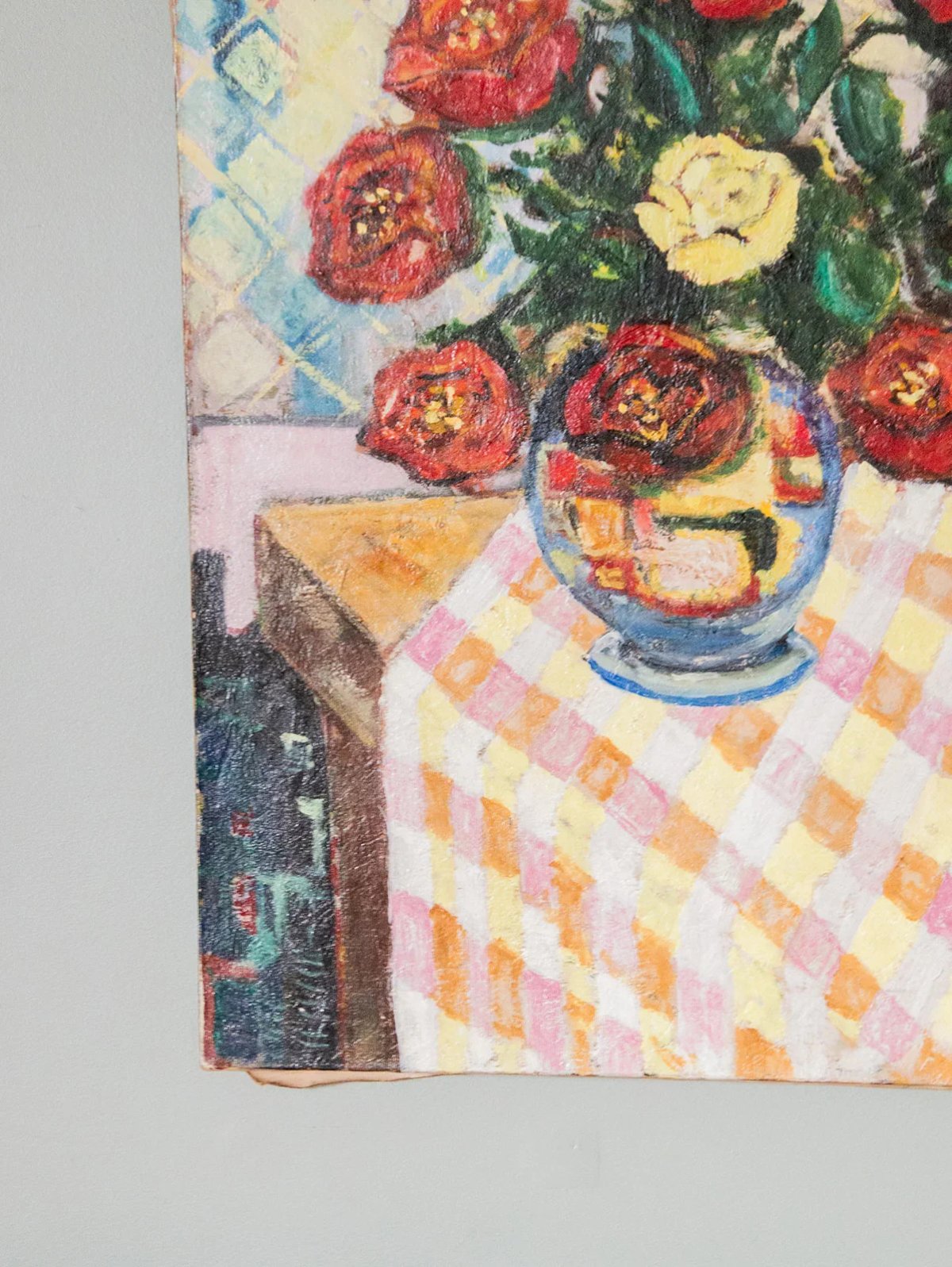 Découvrez cette huile sur toile captivante, qui dépeint un élégant espace d'intérieur agrémenté d'une table et d'un bouquet de roses. Inspirée par l'esthétique fauve de Matisse des années 30, cette œuvre dégage une chaleur et une vivacité incontestables. Provenant de l'atelier d'Obodjan, ce tableau a bénéficié d'un nettoyage et d'une restauration soignée, garantissant sa beauté et sa longévité. Ajoutez une touche artistique et colorée à votre décoration avec cette pièce unique. Exclusivité web, la rencontre se fera chez vous ! Longueur : 92 cm Largeur : 73 cm État:Occasion: Objet ayant été utilisé. Objet présentant quelques marques d'usure superficielle, ...Occasion: Objet ayant été utilisé. Objet présentant quelques marques d'usure superficielle, entièrement opérationnel et fonctionnant correctement. Il peut s'agir d'un modèle de démonstration ou d'un objet retourné en magasin après une courte période d'utilisation. les éventuelles imperfections. Marque:Debongout Type:Produit chiné Matériau:Toile Style:Contemporain