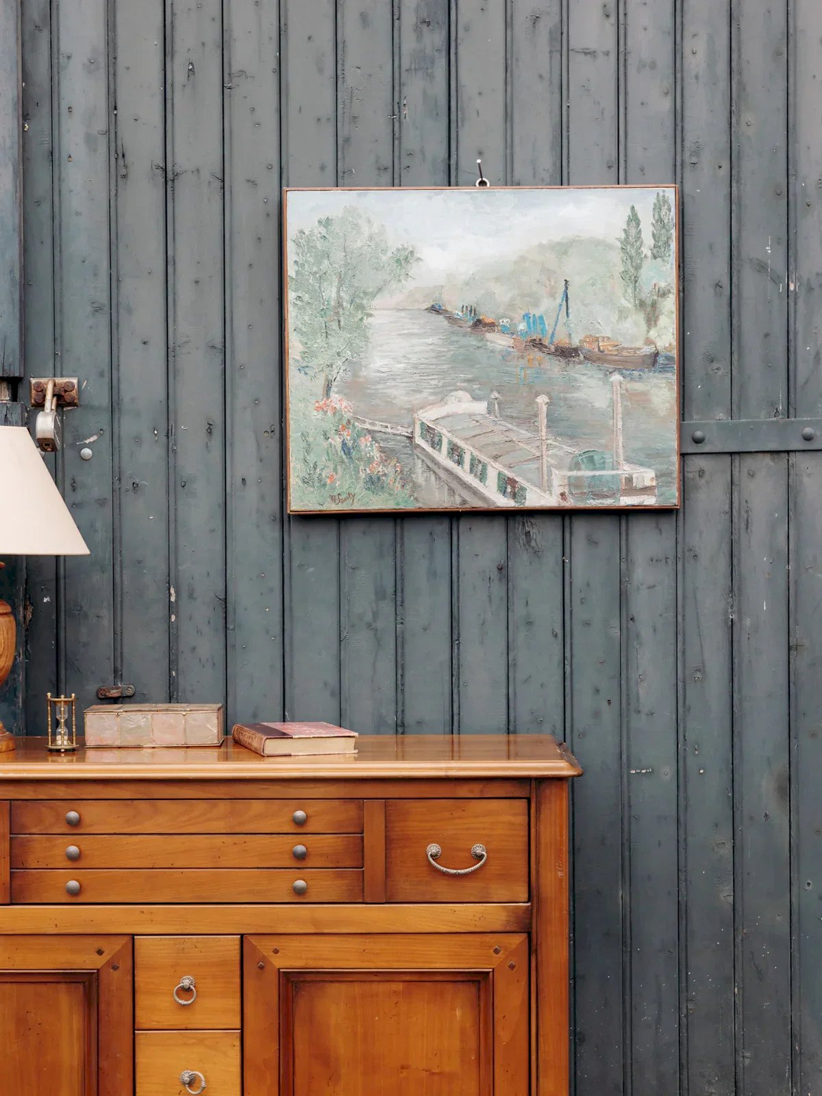 Ajoutez une note artistique à votre intérieur avec cette toile peinte, délicatement encadrée d’un fin cadre en bois. Son style sobre et raffiné lui permet de s’intégrer facilement dans tout type de décoration, tout en apportant une touche d’élégance. Idéale pour mettre en valeur un mur ou enrichir une composition murale, cette pièce séduira aussi bien les amateurs d’art que les passionnés de décoration. Largeur : 51 cm Hauteur : 62 cm État:Occasion: Objet ayant été utilisé. Objet présentant quelques marques d'usure superficielle, ...Occasion: Objet ayant été utilisé. Objet présentant quelques marques d'usure superficielle, entièrement opérationnel et fonctionnant correctement. Il peut s'agir d'un modèle de démonstration ou d'un objet retourné en magasin après une courte période d'utilisation. les éventuelles imperfections. Marque:Debongout Type:Produit chiné Matériau:Toile, Bois Style:Contemporain