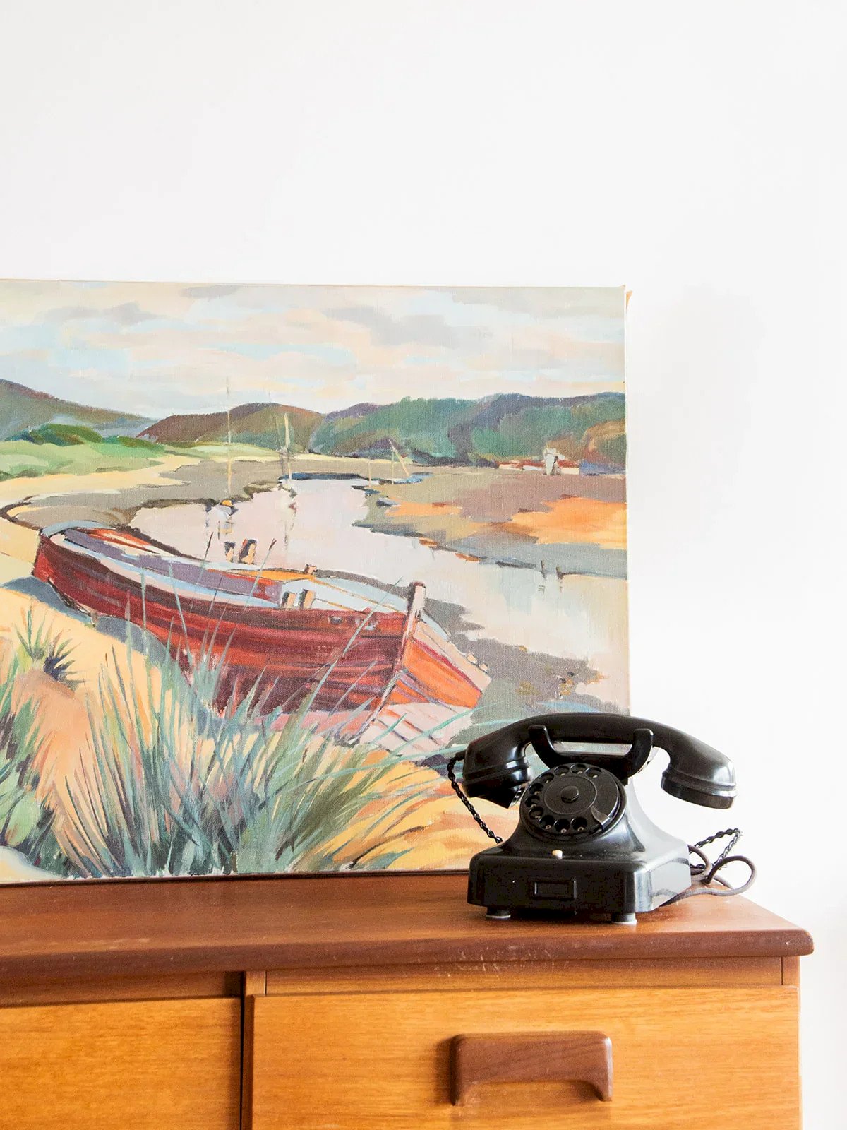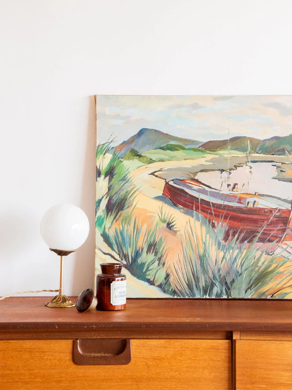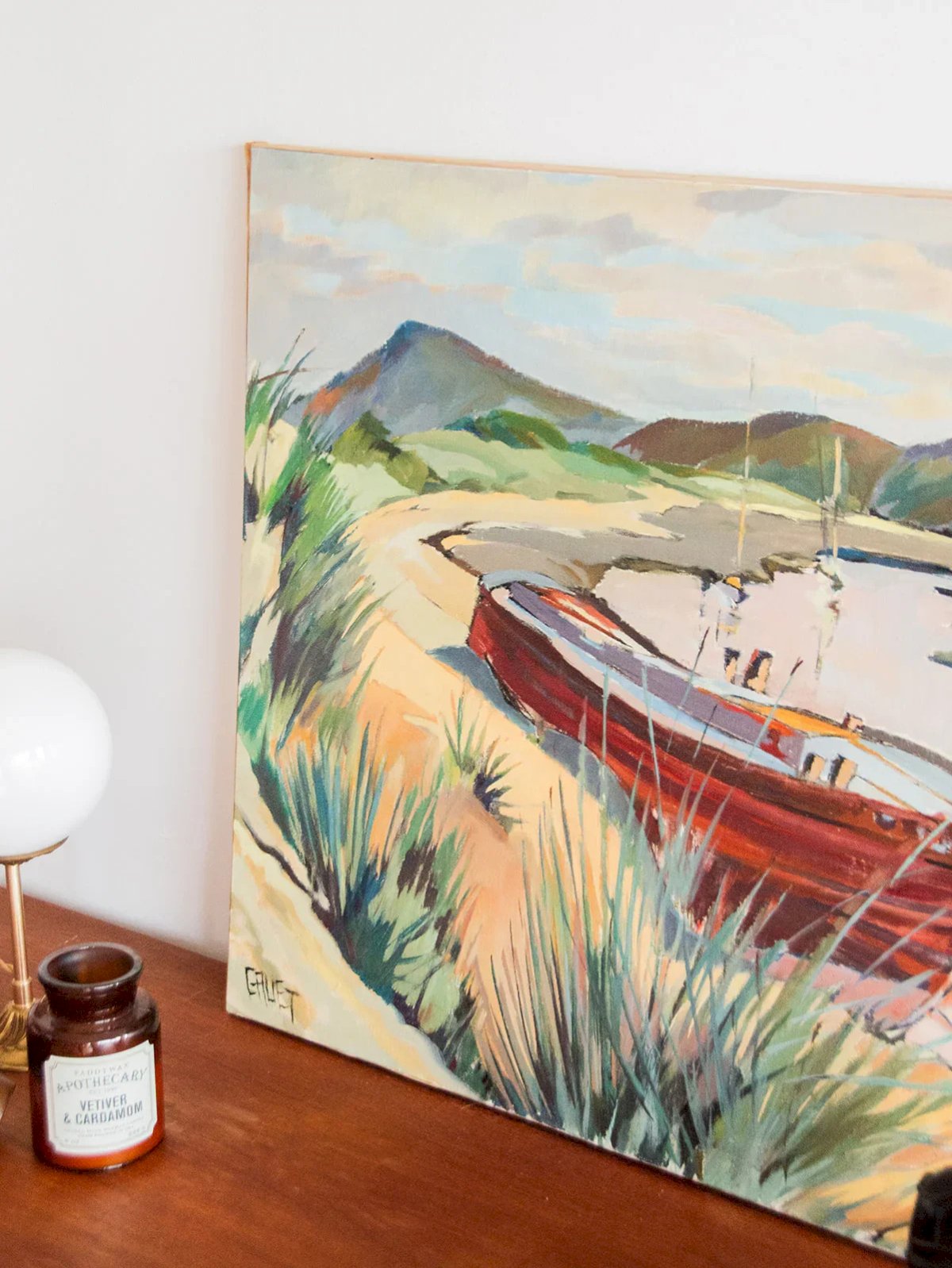 Découvrez cette huile sur toile captivante représentant une péniche échouée au cœur d'une nature envoûtante. Signée par l'artiste Cauet, cette œuvre émane une sérénité et une beauté intemporelle, parfaite pour embellir votre intérieur. Les détails minutieusement peints nous invitent à rêver et à explorer, faisant de cette pièce un ajout incontournable pour les amateurs d'art et de paysages poétiques. Ajoutez une touche d'originalité à votre décoration grâce à cette sublime peinture. Exclusivité web, la rencontre se fera chez vous ! Longueur : 73 cm Largeur : 54 cm État:Occasion: Objet ayant été utilisé. Objet présentant quelques marques d'usure superficielle, ...Occasion: Objet ayant été utilisé. Objet présentant quelques marques d'usure superficielle, entièrement opérationnel et fonctionnant correctement. Il peut s'agir d'un modèle de démonstration ou d'un objet retourné en magasin après une courte période d'utilisation. les éventuelles imperfections. Marque:Debongout Type:Produit chiné Matériau:Toile Style:Contemporain
