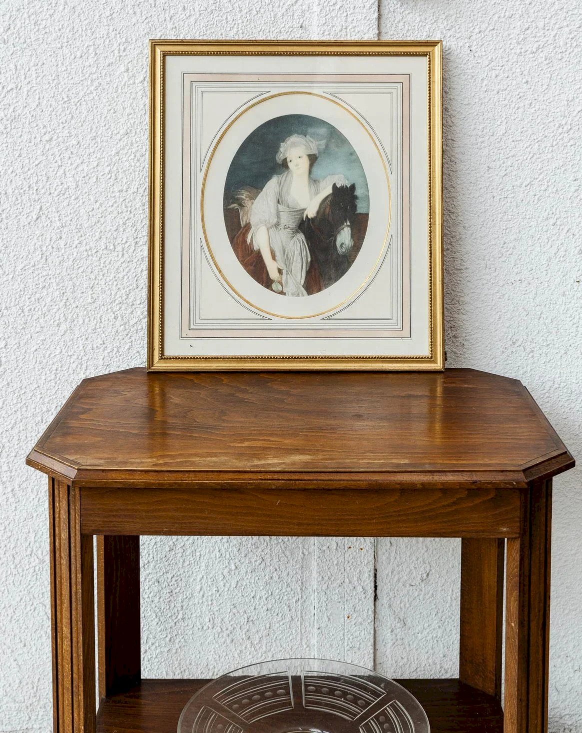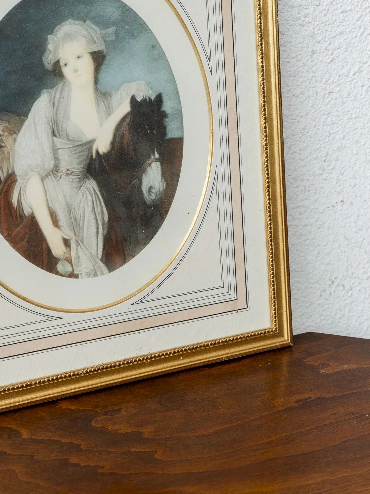 Découvrez notre magnifique tableau doré vintage, mettant en scène une femme élégante et son cheval majestueux. Cette œuvre d'art, riche en détails et en couleurs, apportera une touche de charme et de sophistication à votre intérieur. Le cadre doré souligne l'élégance de la peinture, faisant de ce tableau un véritable point focal dans n'importe quelle pièce. Parfait pour les amateurs d'art et de chevaux, ce tableau est une pièce unique à ne pas manquer. Exclusivité web, la rencontre se fera chez vous ! Largeur : 52,5 cm Hauteur : 59 cm État:Occasion: Objet ayant été utilisé. Objet présentant quelques marques d'usure superficielle, ...Occasion: Objet ayant été utilisé. Objet présentant quelques marques d'usure superficielle, entièrement opérationnel et fonctionnant correctement. Il peut s'agir d'un modèle de démonstration ou d'un objet retourné en magasin après une courte période d'utilisation. les éventuelles imperfections. Marque:Debongout Type:Produit chiné Matériau:Papier Style:Contemporain