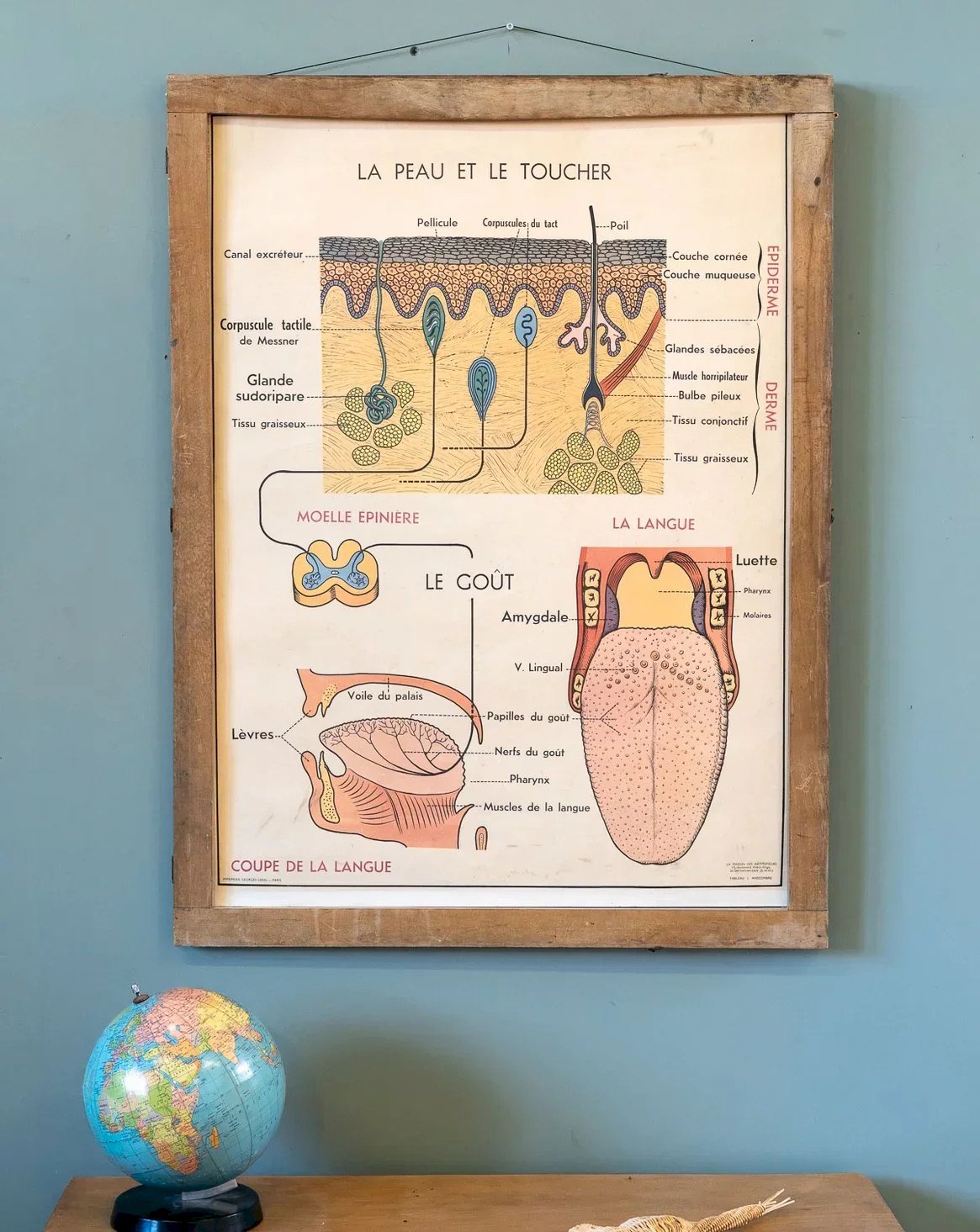 Découvrez notre affiche d'apprentissage vintage sur la peau et le toucher, un véritable bijou d'illustration éducative. Ce poster artistique, mêlant esthétique et pédagogie, met en lumière les différentes couches de la peau et l'importance du sens du toucher. Parfait pour décorer un espace de travail ou une salle de classe, il apportera une touche d'originalité tout en éveillant la curiosité des petits comme des grands. Un incontournable pour les passionnés de sciences et d'art! Vendue sans le cadre. Quelques traces d'usage. Largeur : 70 cm Hauteur : 90 cm État:Occasion: Objet ayant été utilisé. Objet présentant quelques marques d'usure superficielle, ...Occasion: Objet ayant été utilisé. Objet présentant quelques marques d'usure superficielle, entièrement opérationnel et fonctionnant correctement. Il peut s'agir d'un modèle de démonstration ou d'un objet retourné en magasin après une courte période d'utilisation. les éventuelles imperfections. Marque:Debongout Type:Produit chiné Matériau:Papier Style:Contemporain