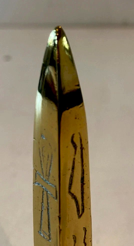 Obélisque en bronze a décor d'écriture en hiéroglyphe Bon état Dimension  H 12.5 x L 3 x 3 cm  XX siècle  Type:Objet de vitrine, Décoratif Période:Design du XXème Origine:France Hauteur:12.5 Matière:Bronze Largeur:3