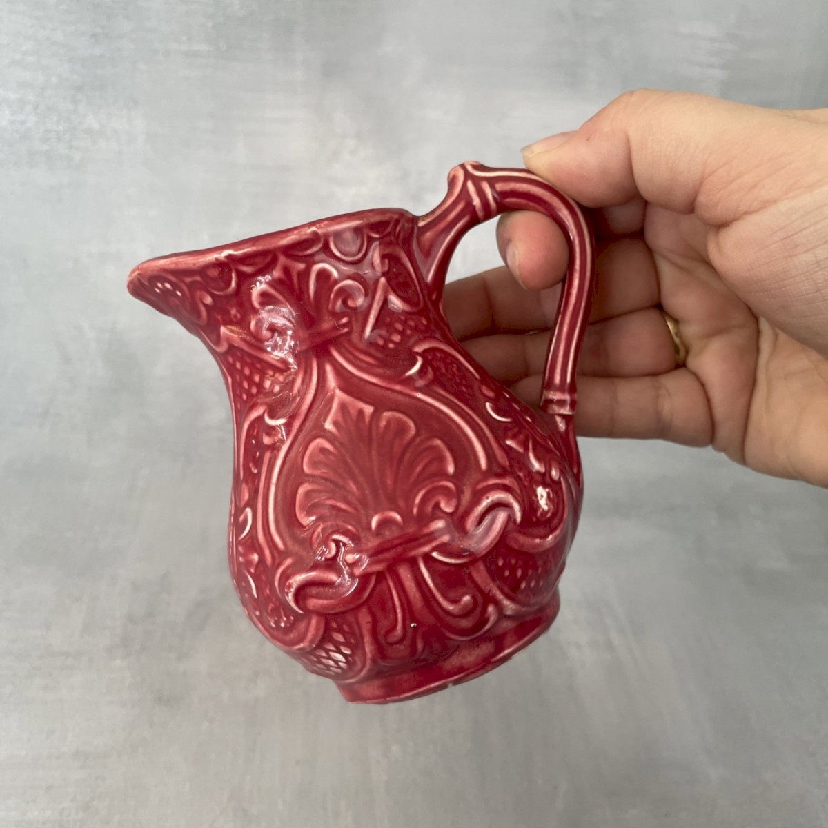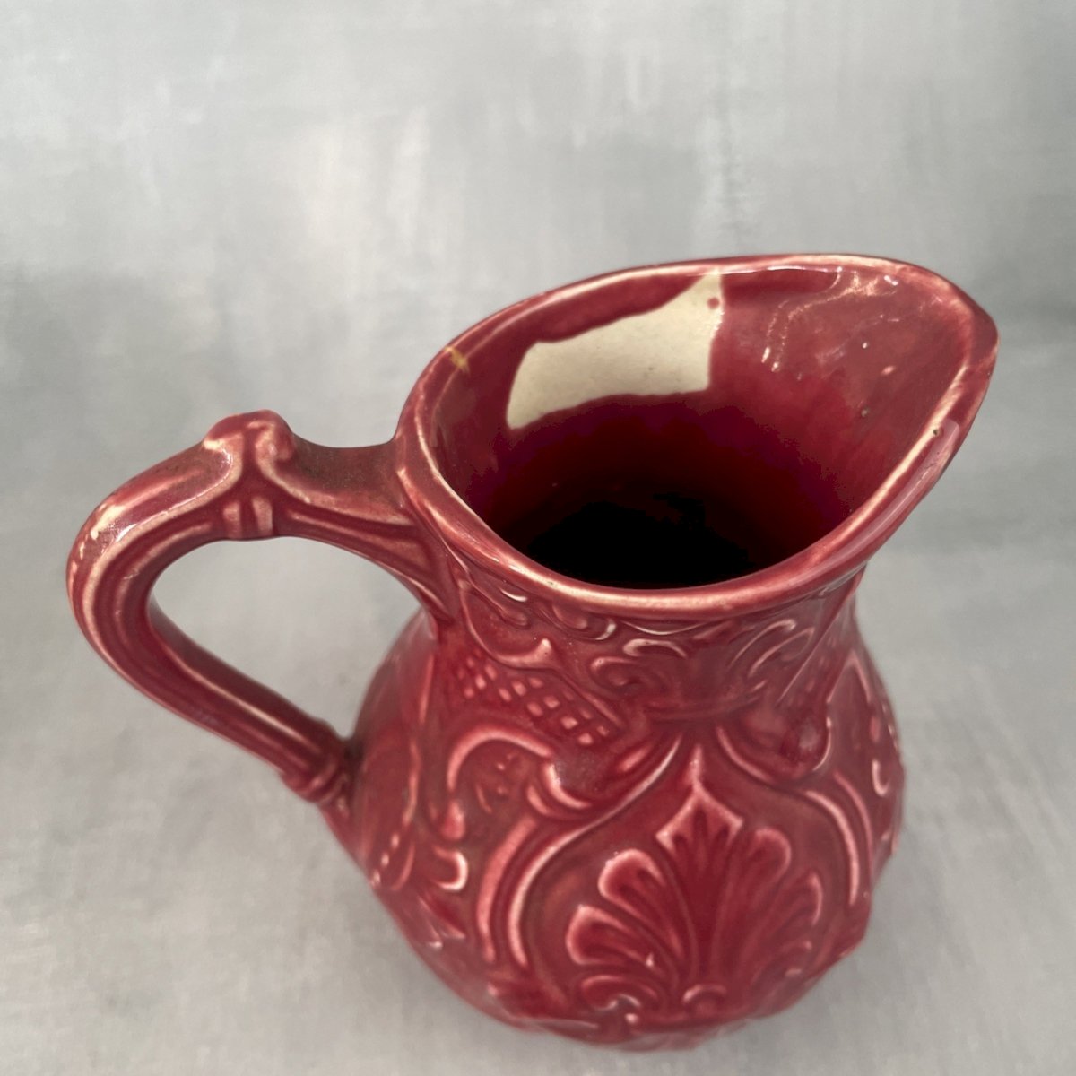 ONNAING pot à lait crémier faience barbotine rose décor relief Haut.~10.5cm