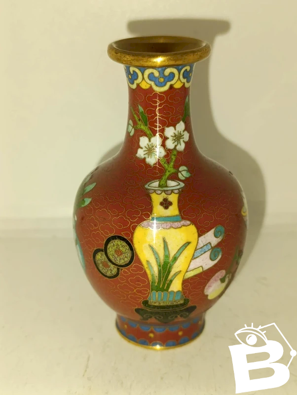 Petit vase dorigine chinoise cloisonné à decor floral en bon etat(made in chiner)