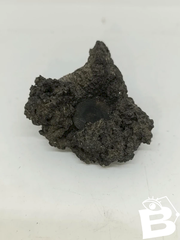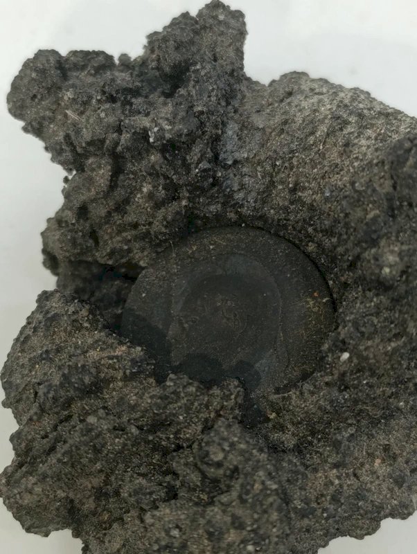 original pierre de lave avec une piece incruste dedans en bon etat origine et epoque à definir ancienne piece napoleon en cuivre sans doute dimension 6x6cm hauteur 3.5cm