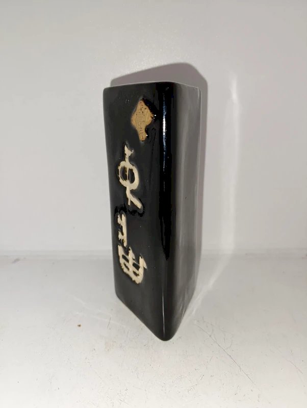original vase asiatique de forme triangle à symbole en bon etat Noir