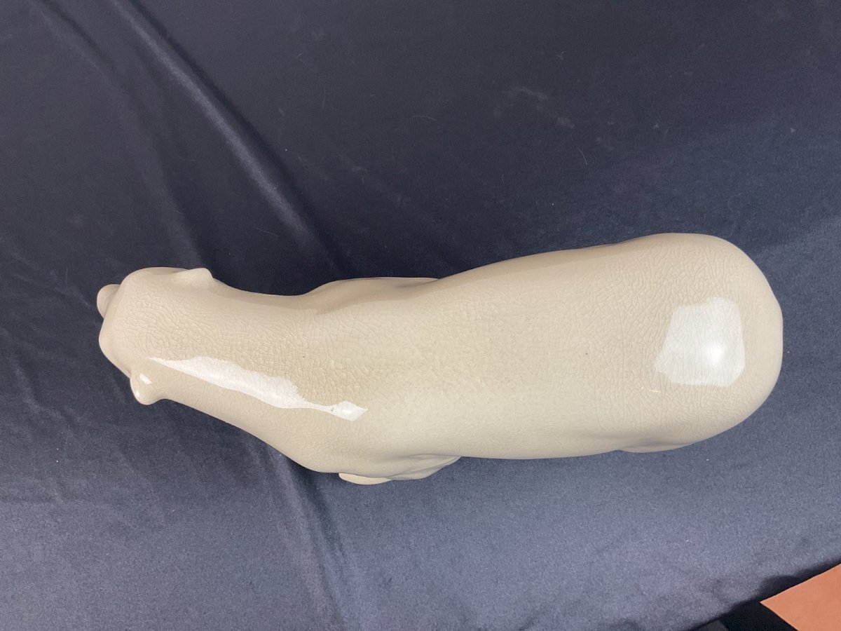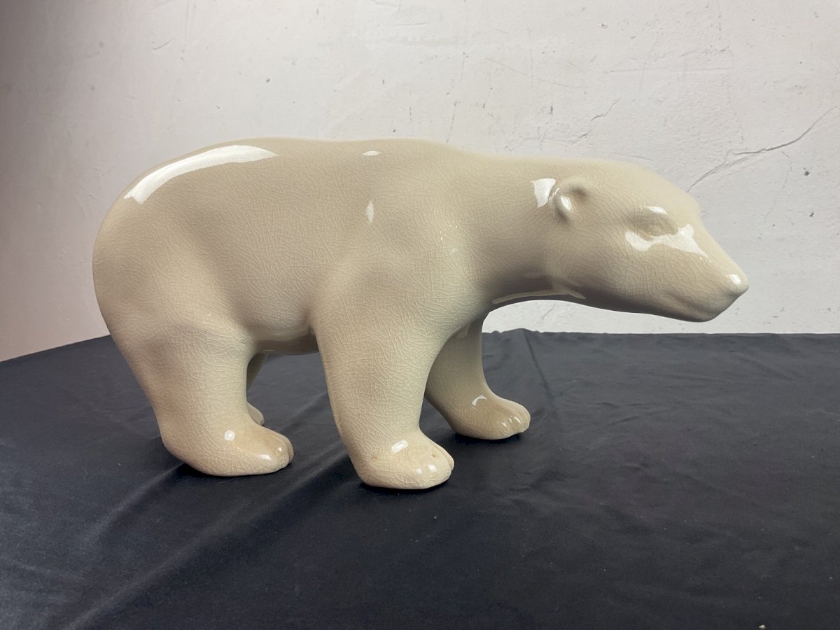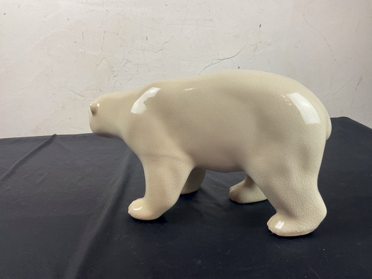 Ours polaire en Céramique L&V Céram craquelé  ( DLG = Dans le Goût ) de Pompon Longueur : 31 cm Hauteur : 16,5 cm