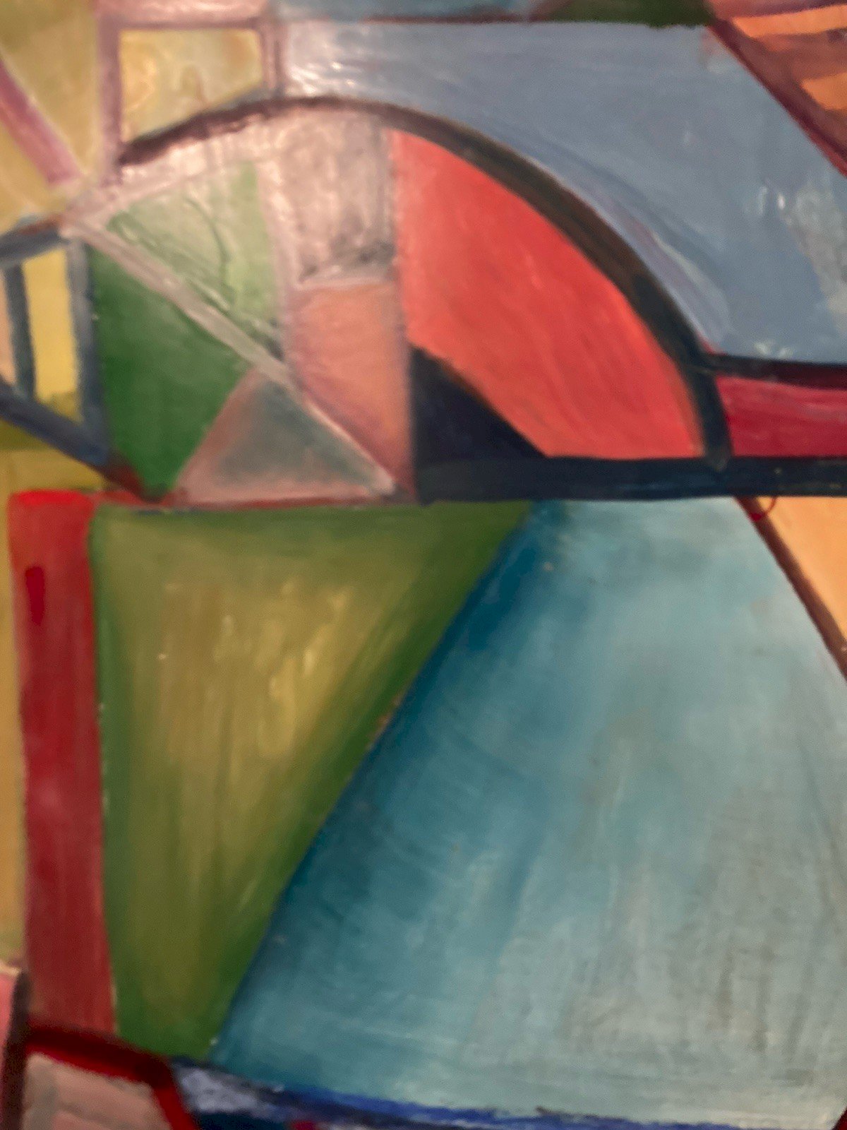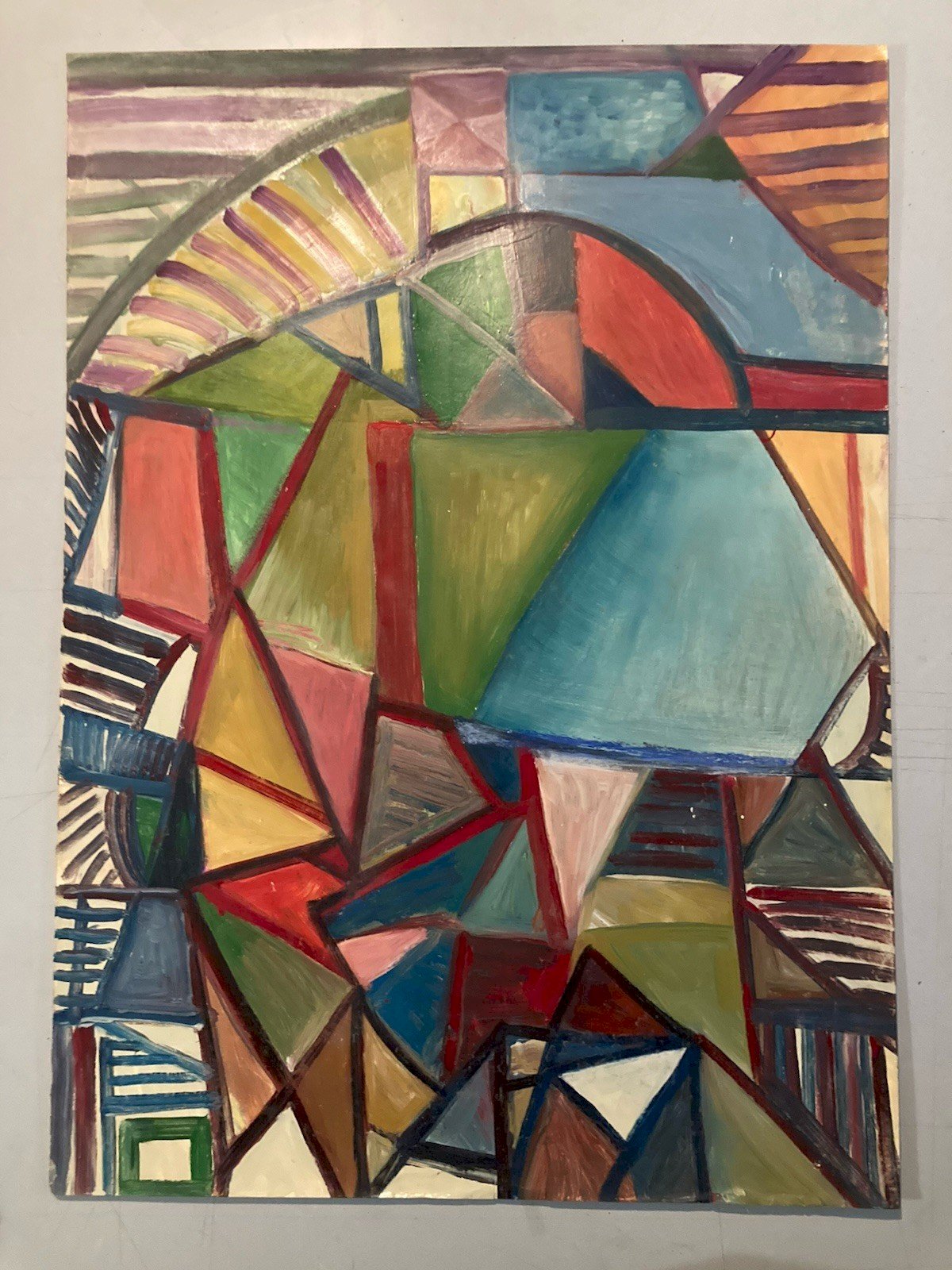 Painting Art Peinture Papier Abstrait Abstraction 1980 Cubiste Cubisme XXe Old