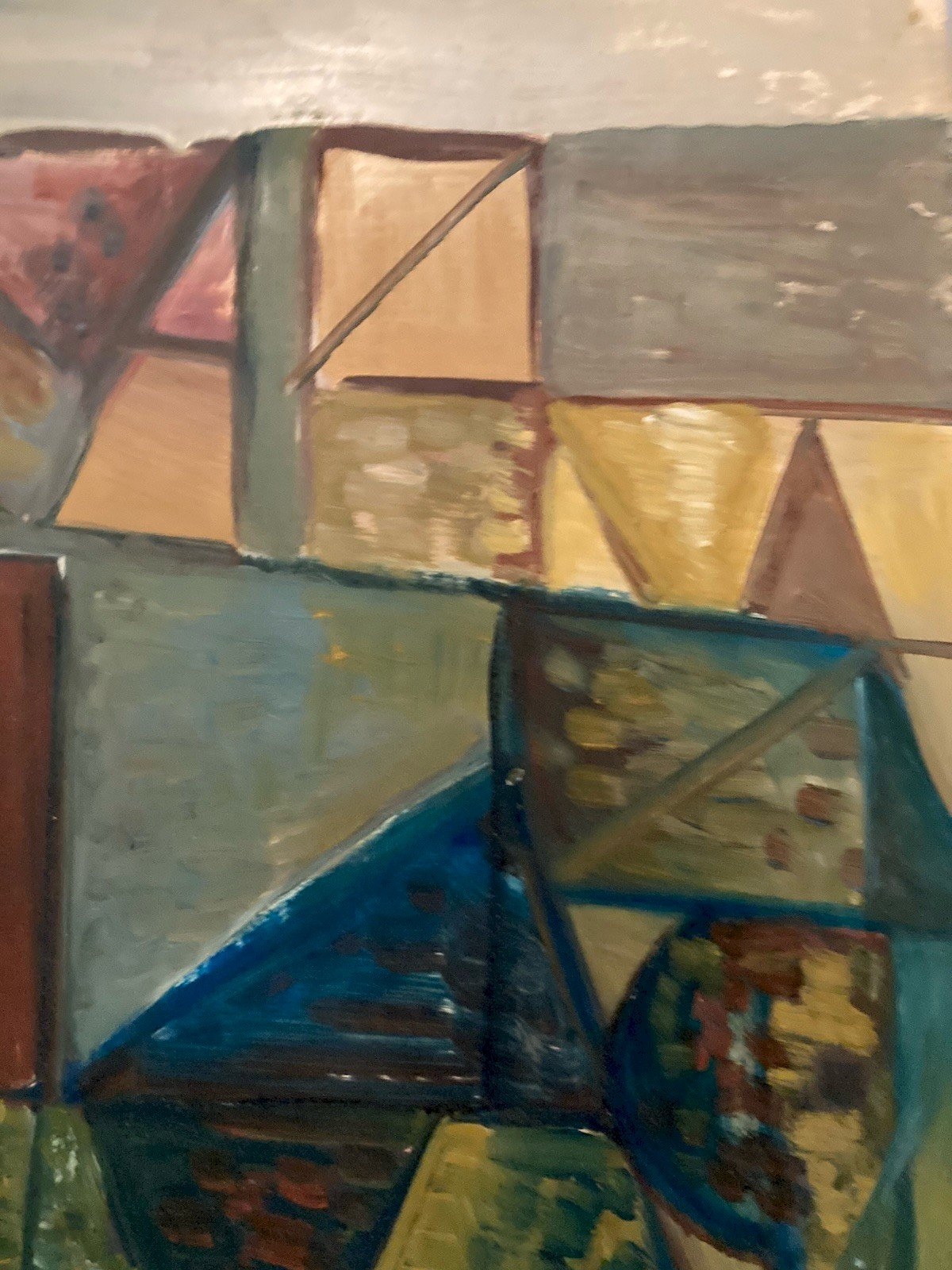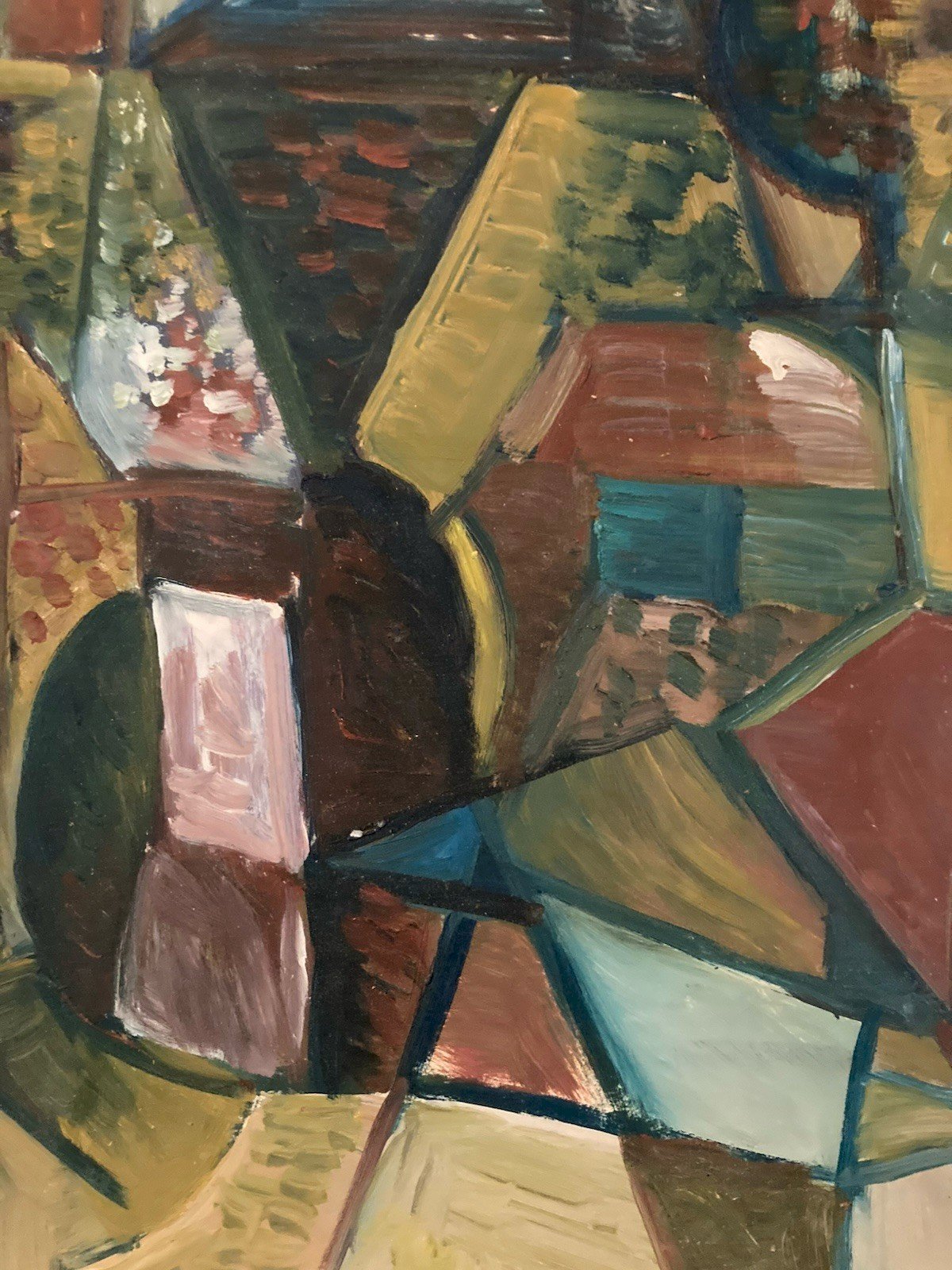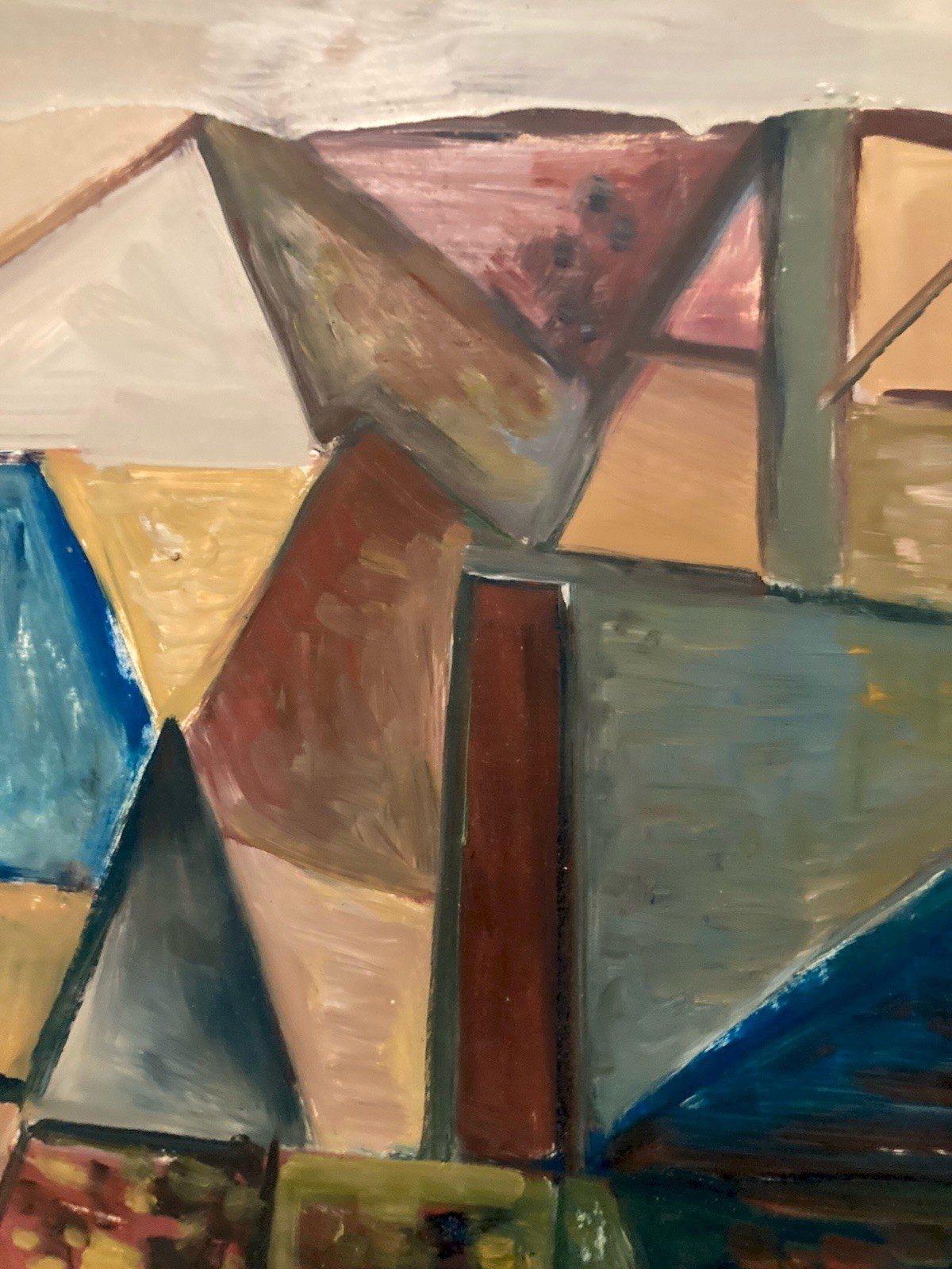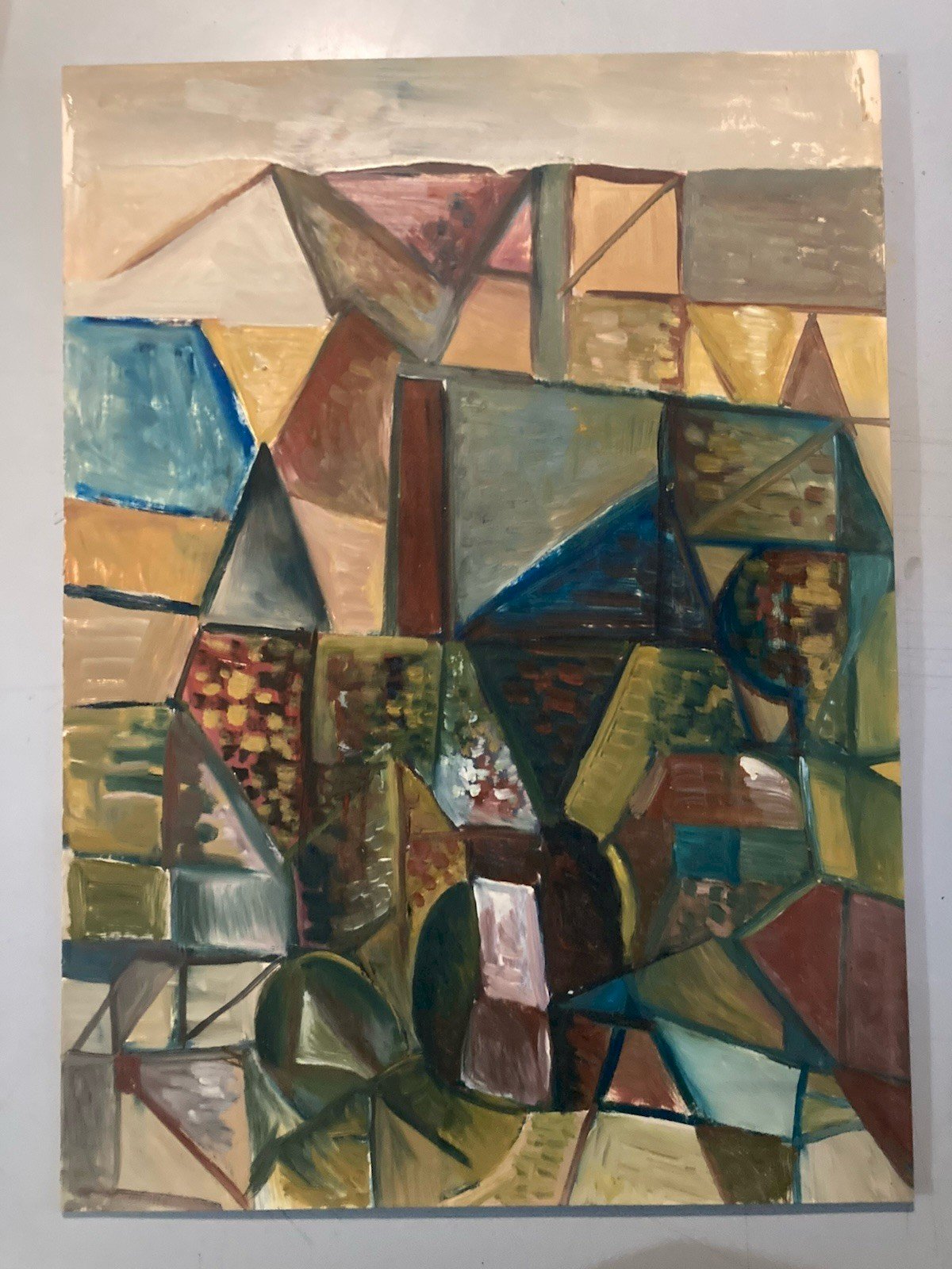 Painting Art Peinture Papier Abstrait Abstraction Old 1980 Cubiste Cubisme XXe