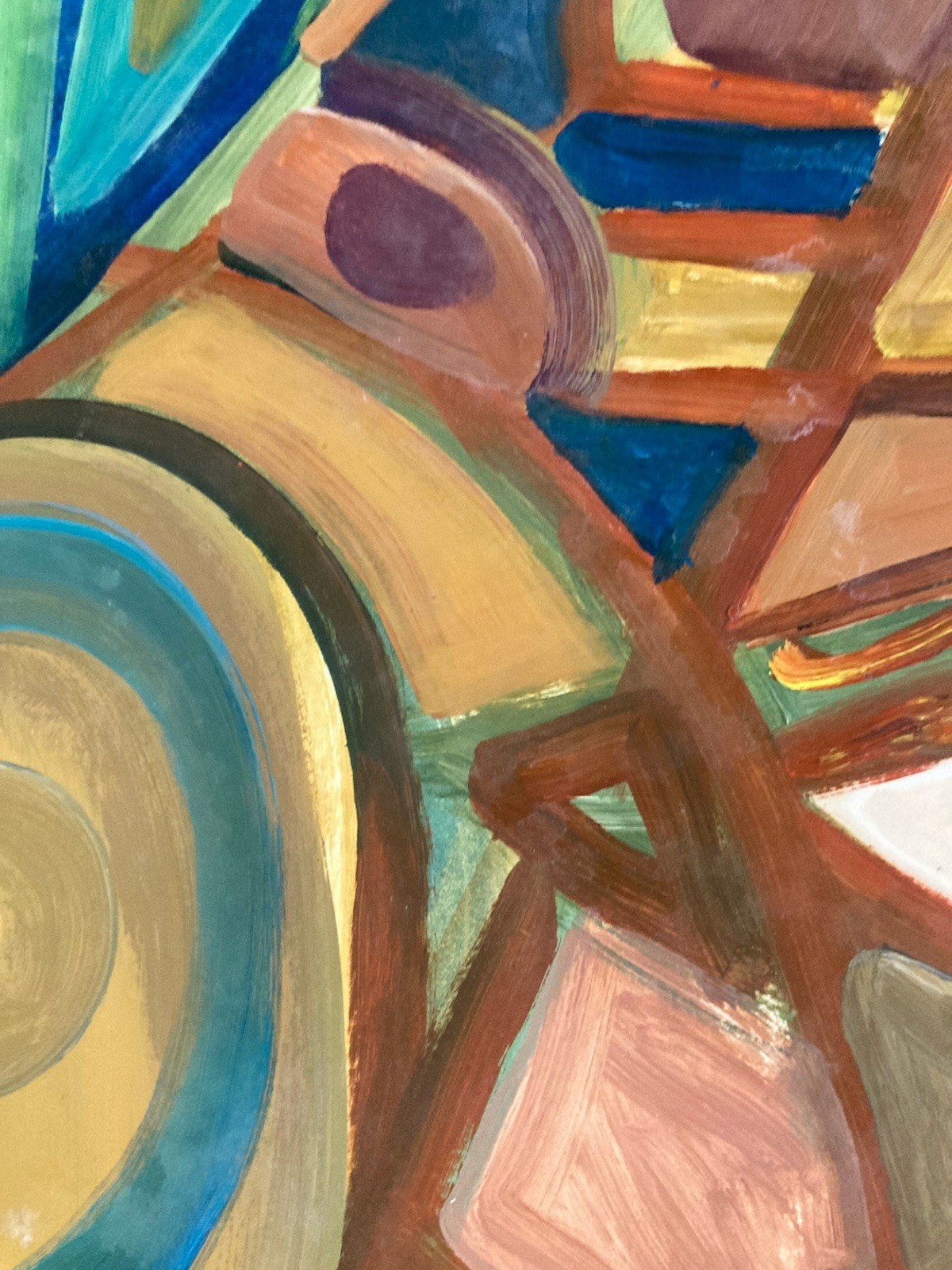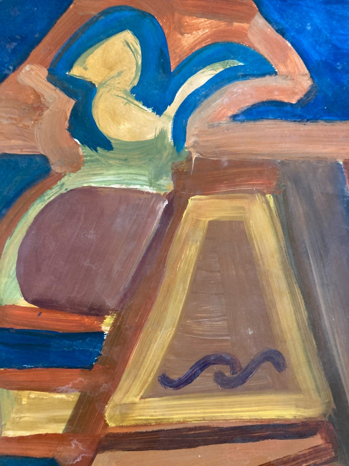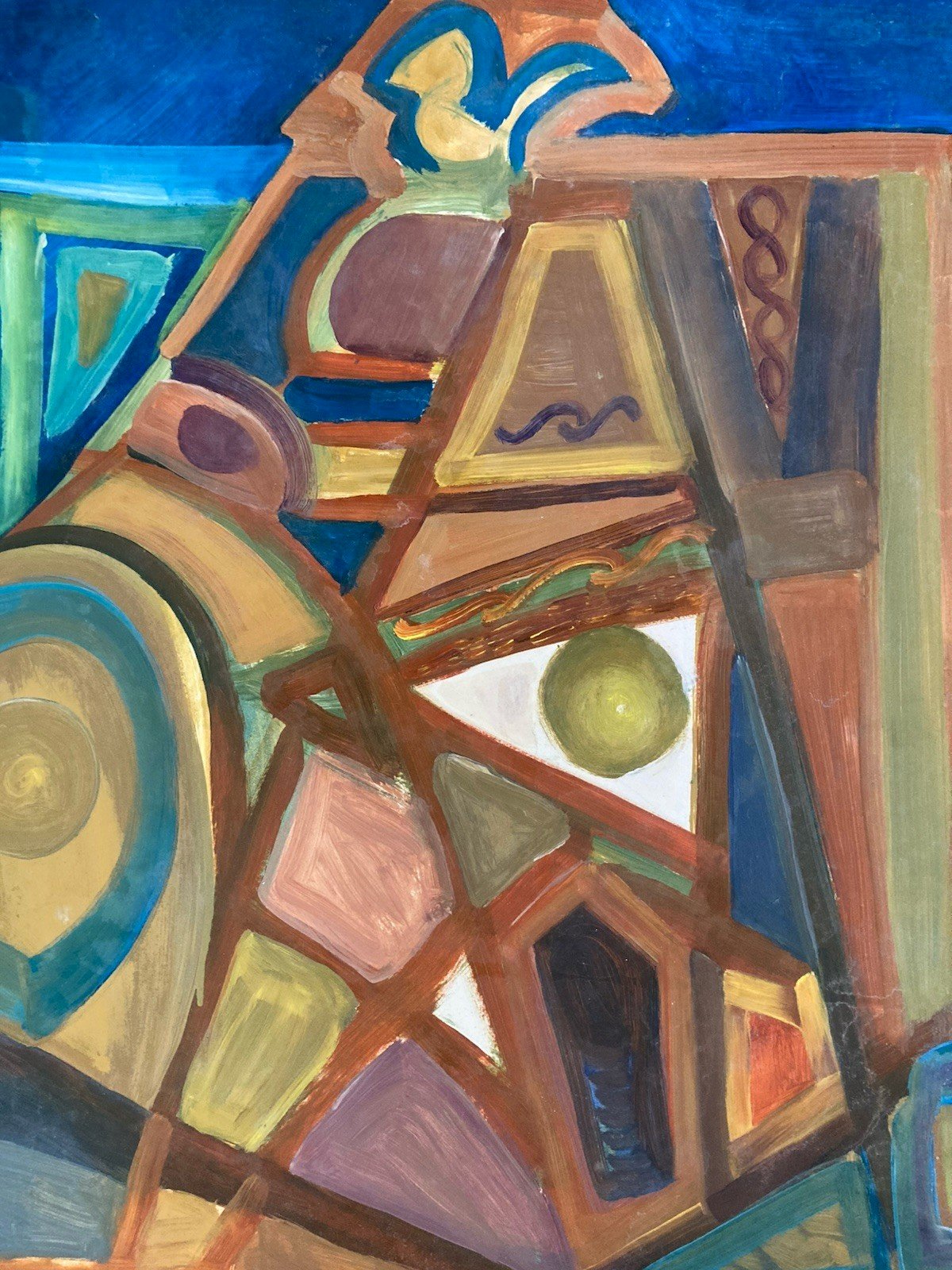 Painting Art Peinture Toit Papier Abstrait Abstraction 1980 Paysage Cubisme XXe