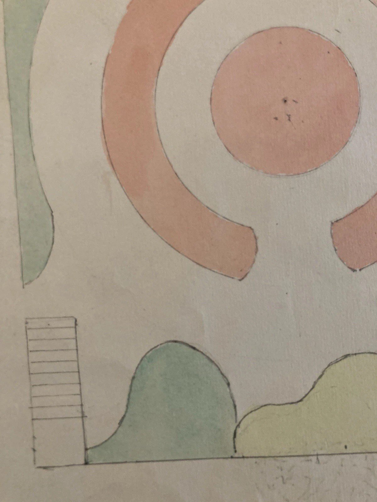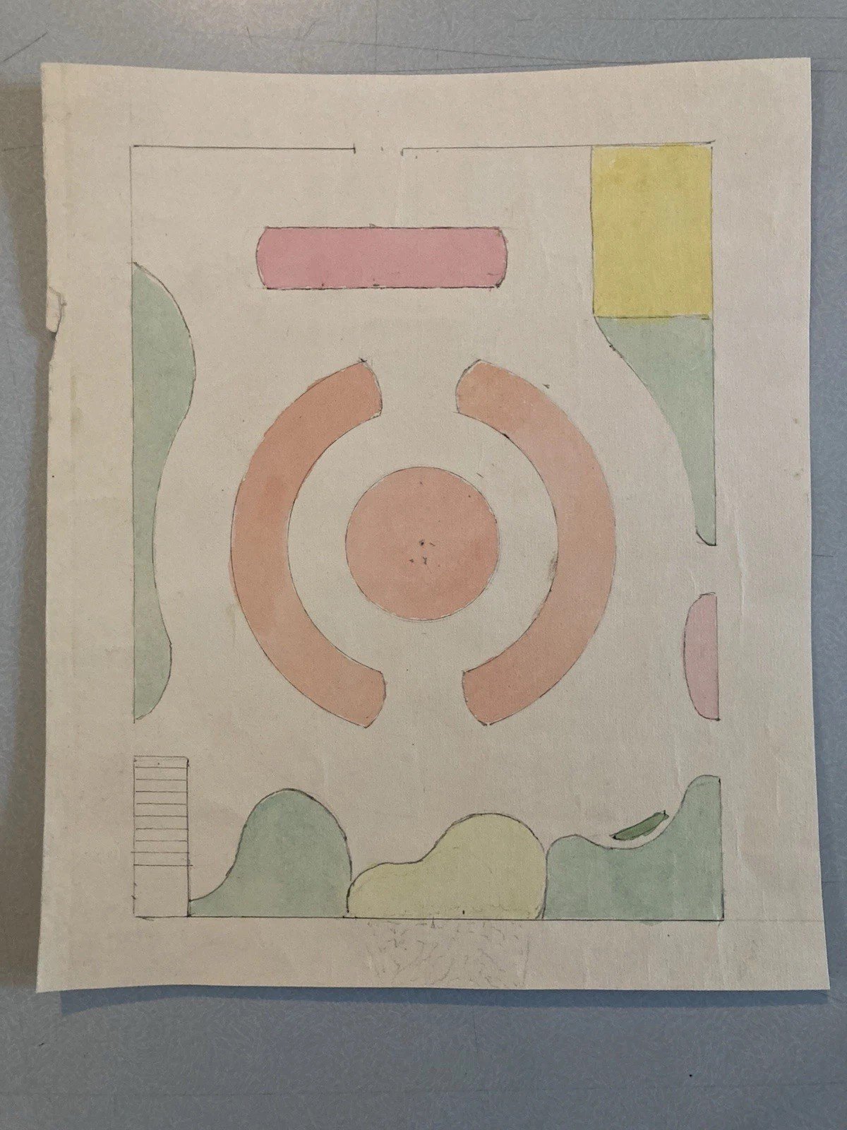 Painting Peinture 1930 Original Architecture Old Plan Jardin Tarn France Ancien