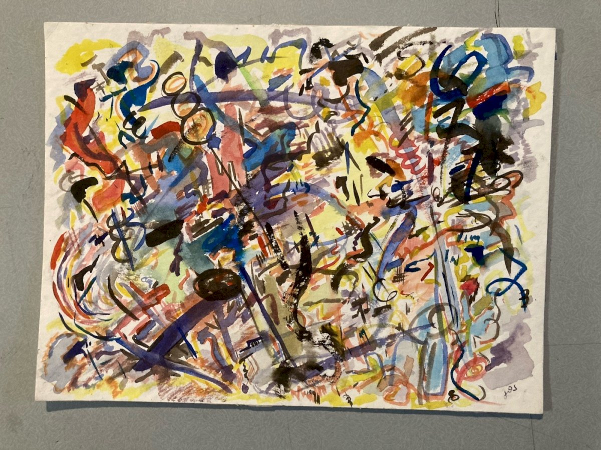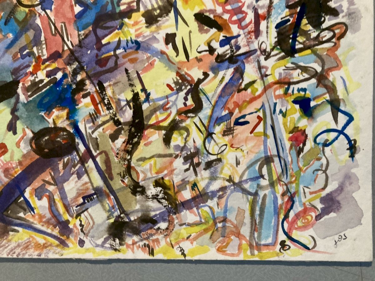 Painting Peinture 1980 Abstraite Art A Identifier Gouache Papier Abstract XXe