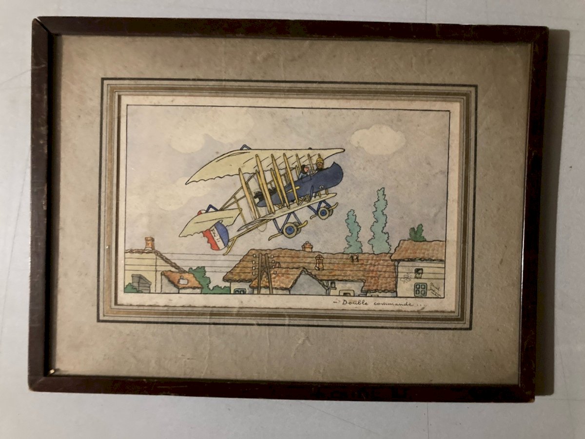 Painting Peinture gouache Sur Papier Marcel Jeanjean Aeronautique Avion 1950 art