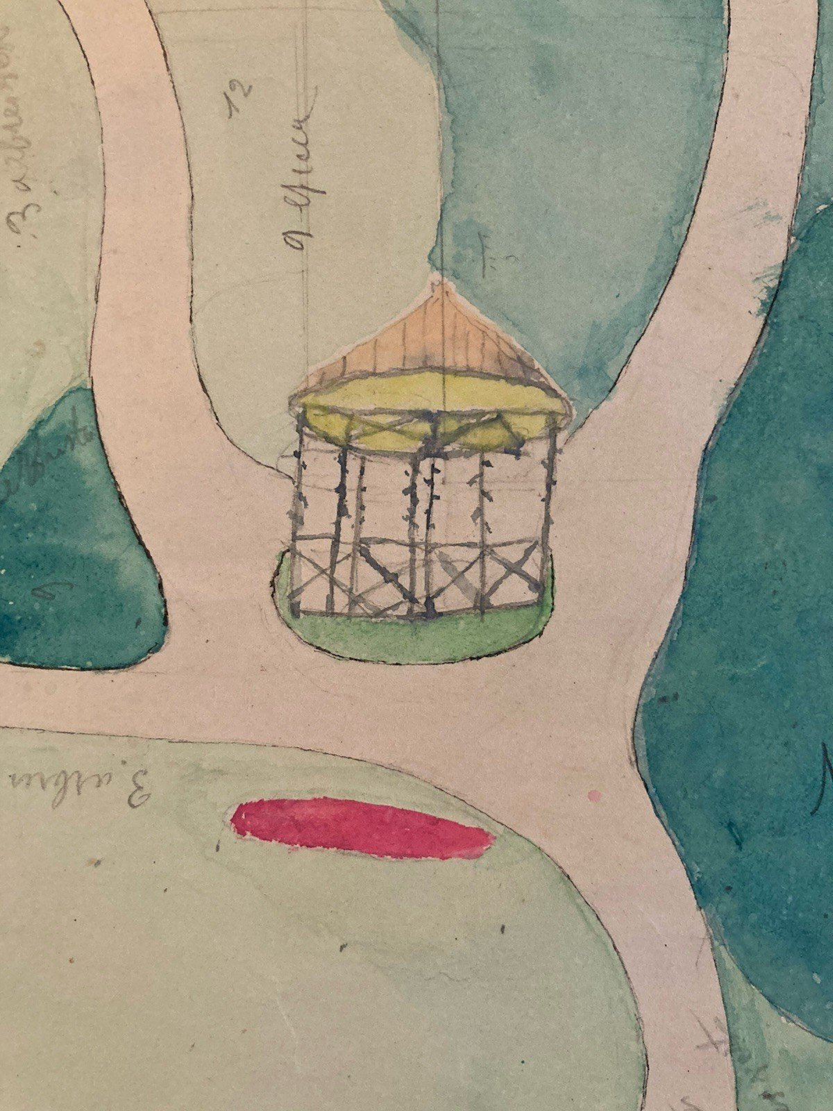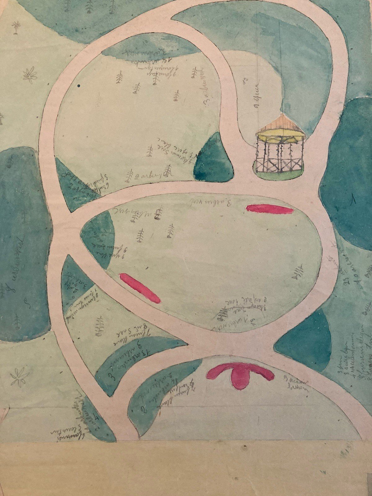 Painting Peinture Original 1930 Architecture Old Plan Jardin Tarn France Ancien