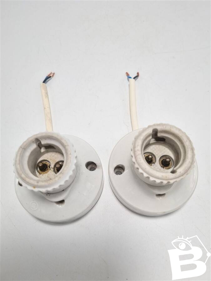 Paire d'anciennes appliques en porcelaine.Elles pourront accueillir une tôle émaillée ou une griffe pour une opaline par exemple.Douille b22 (on trouve facilement des ampoules led à baïonnette)Dimensions: l 6.8 X p 5.8 cm.Poids: 310 g.