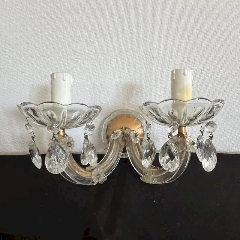 Les nombreuses pampilles en cristal facetté créent un jeu de reflets magiques sur vos murs dès que les appliques sont allumées.