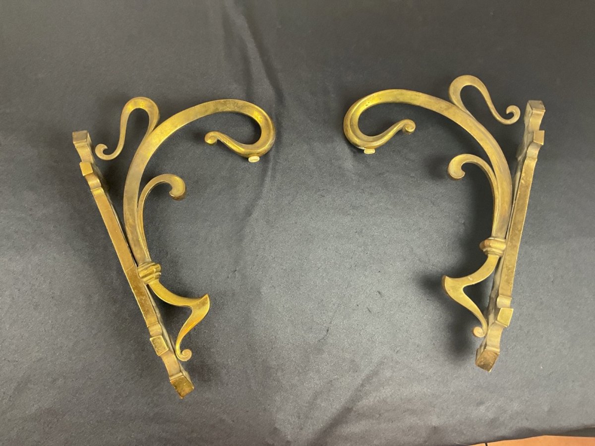 PAIRE D'APPLIQUES EN BRONZE ÉPOQUE ART NOUVEAU  Hauteur : 27 cm Profondeur : 18 cm Couleur:Doré Type:appliques Sous-type:De décoration Pays de fabrication:France Matière:Bronze