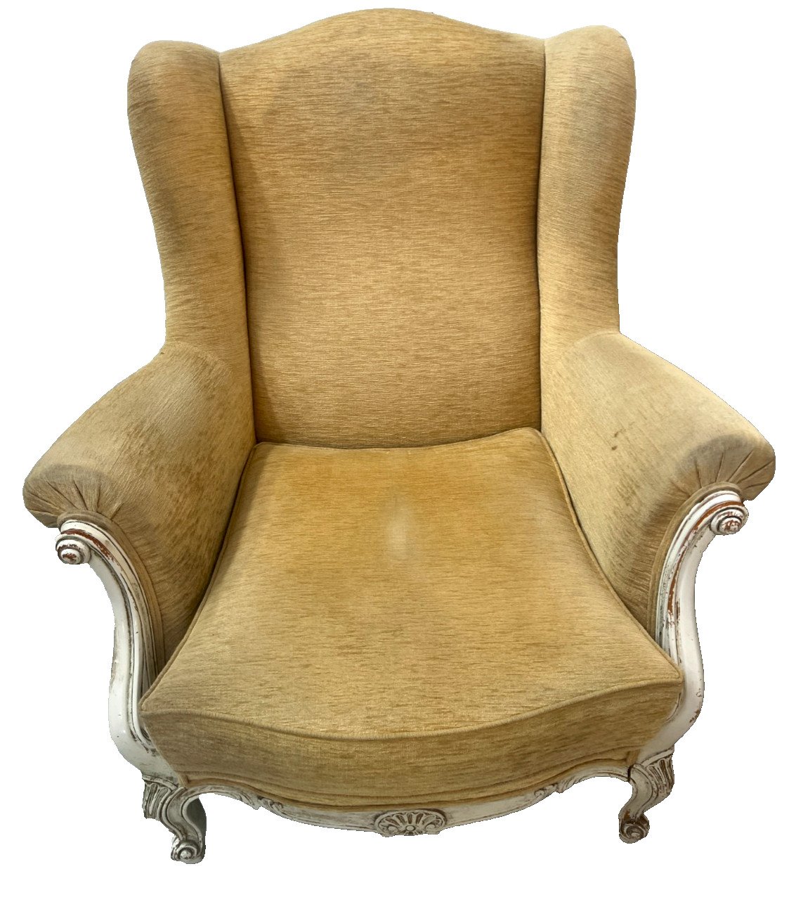 Paire de bergères a oreilles de style Louis XV en hêtre patiné Assises a coussins amovible  Tissus en velours beige en état d'usage  Dimension  H 100 x L 90 x 60 cm  XX siècle  Origine:France Hauteur:100 Matière:Hêtre Longueur:90 Largeur:60