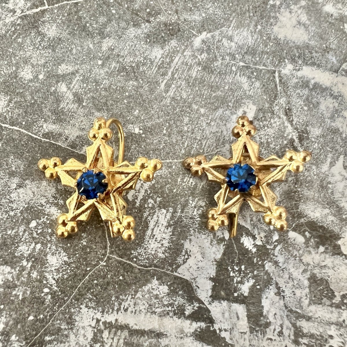 Paire de boucles d’oreilles étoile stock neuf ancienne vers 1930 dormeuses