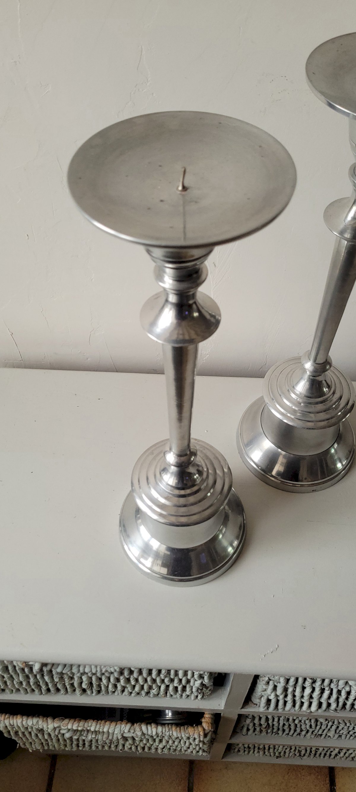 Paire de bougeoirs pique cierges Argenté Métal