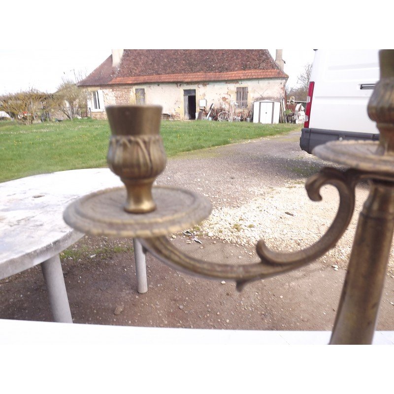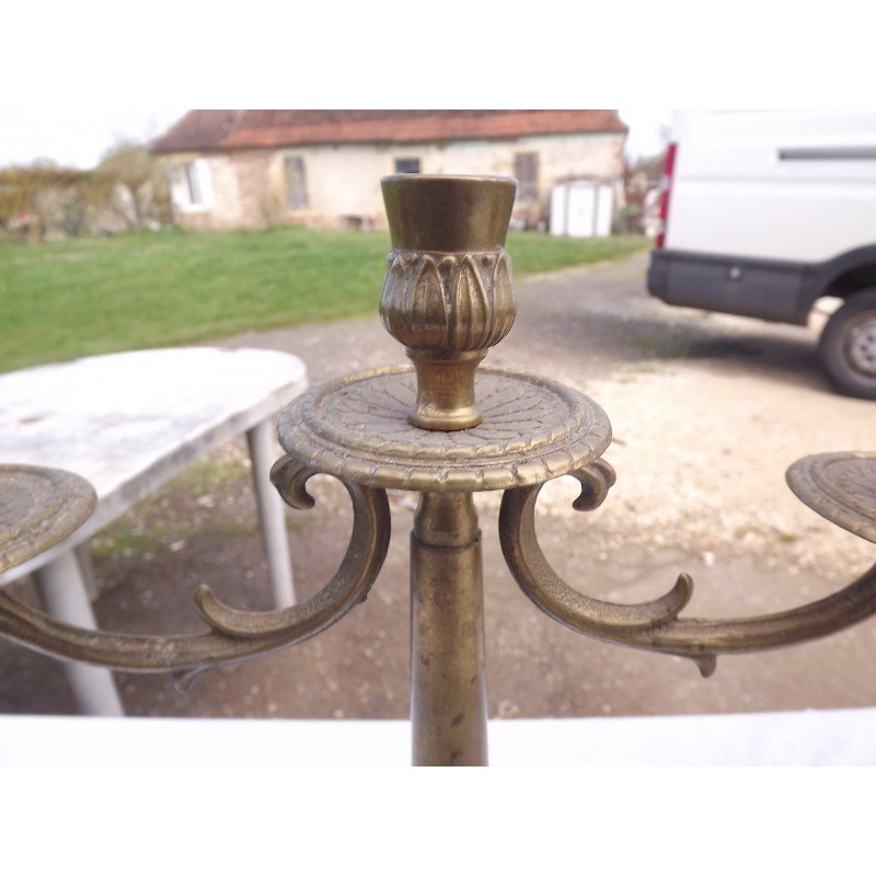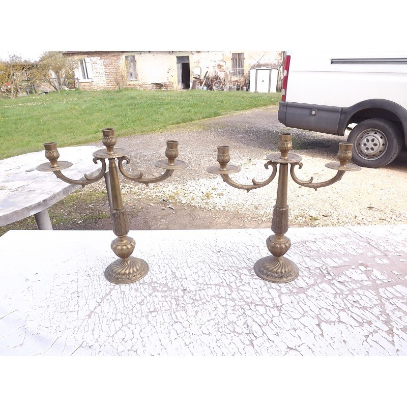 Paire de Chandelier Bronze , 2 Branches , 3 Bobéches , haut : 35 cm , long et larg : 31,5 cm sur 11 cm , poid : 1,4 Kg pièce , trés bon ètat ,
