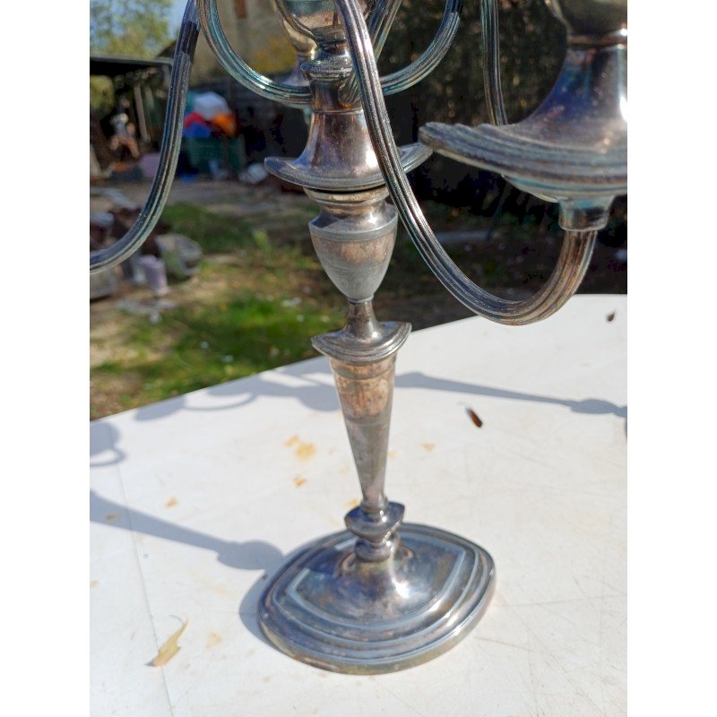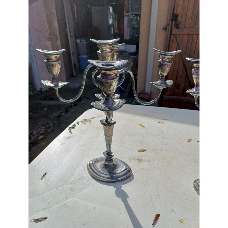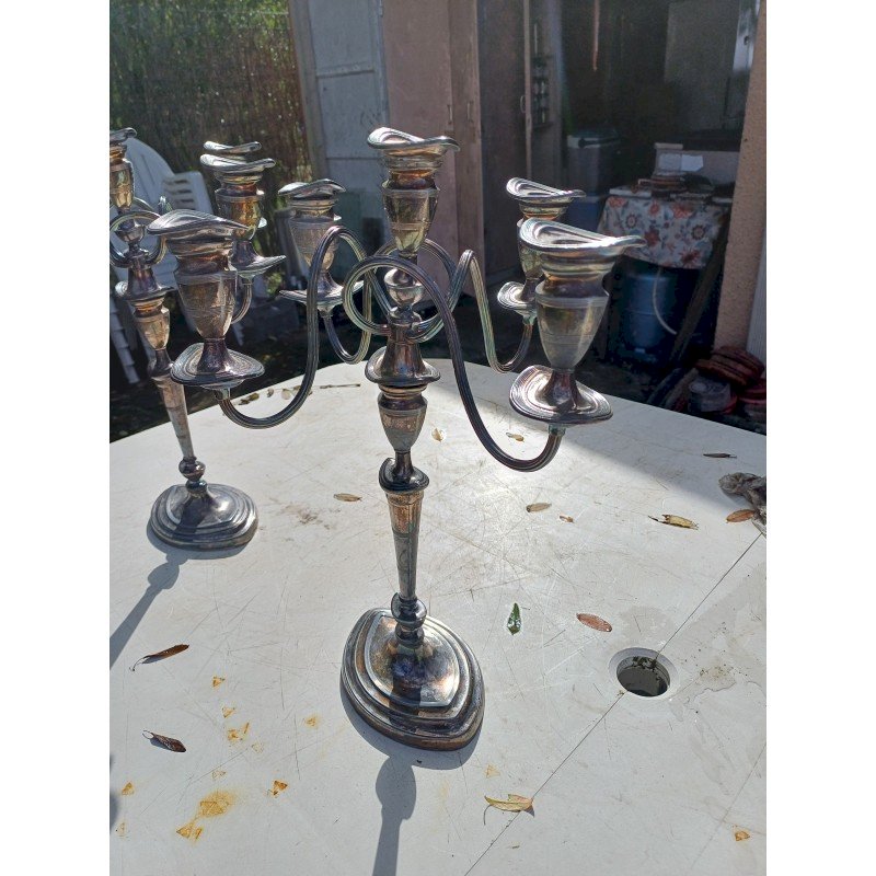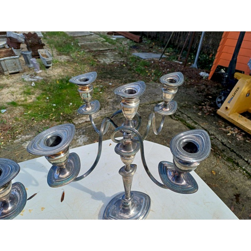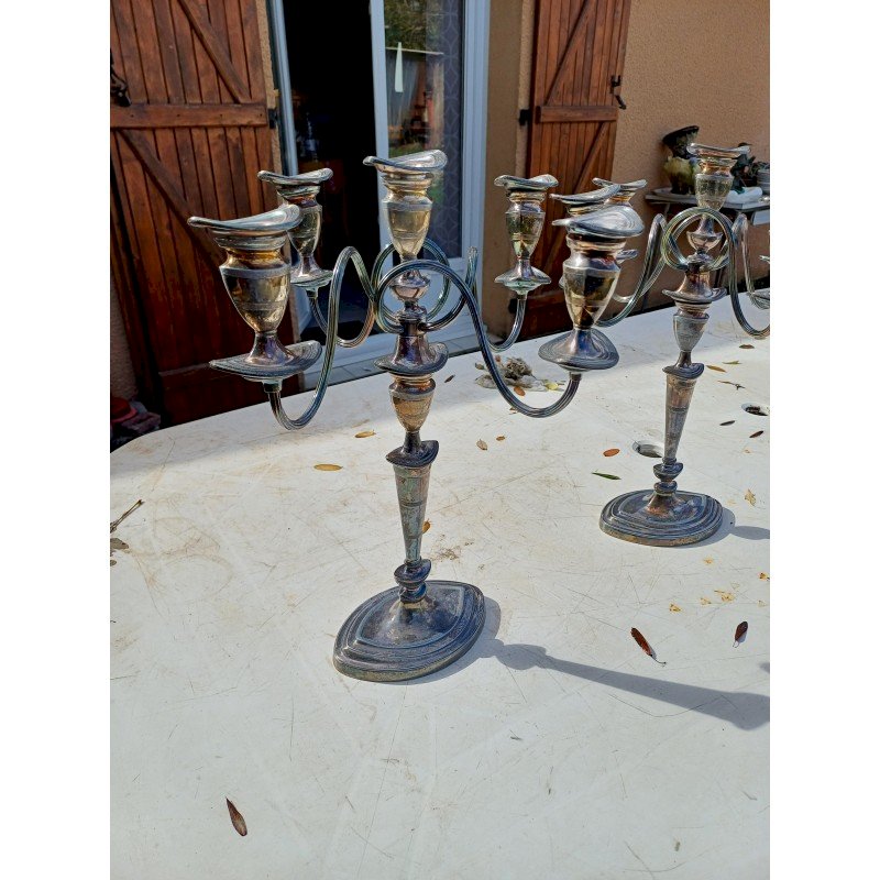 Paire de Chandeliers en Métal Argenté , 5 Branches , Haut : 44 cm , long et larg : 37 cm sur 37 cm , poids : 3,7 Kg pièce , trés bon ètat