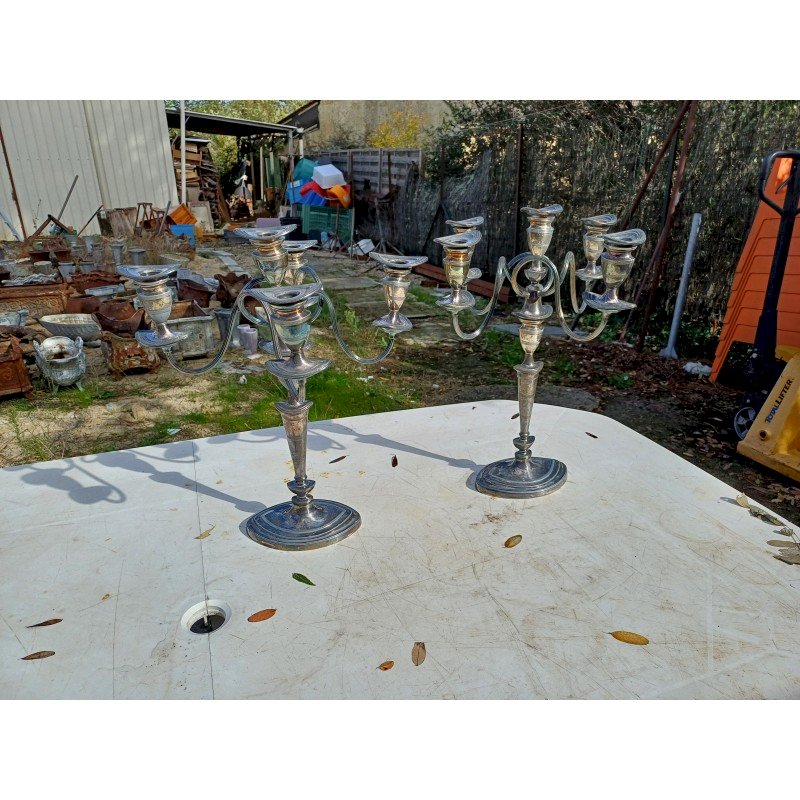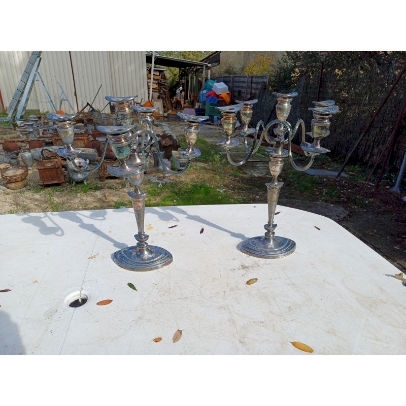 Paire de Chandeliers en Métal Argenté