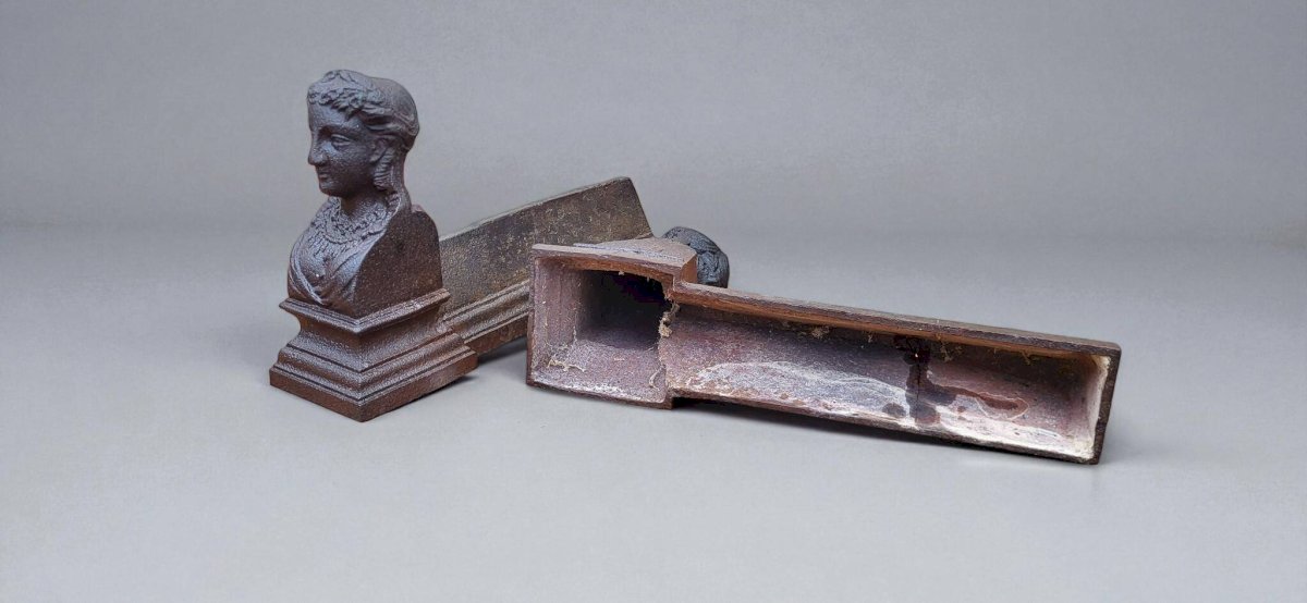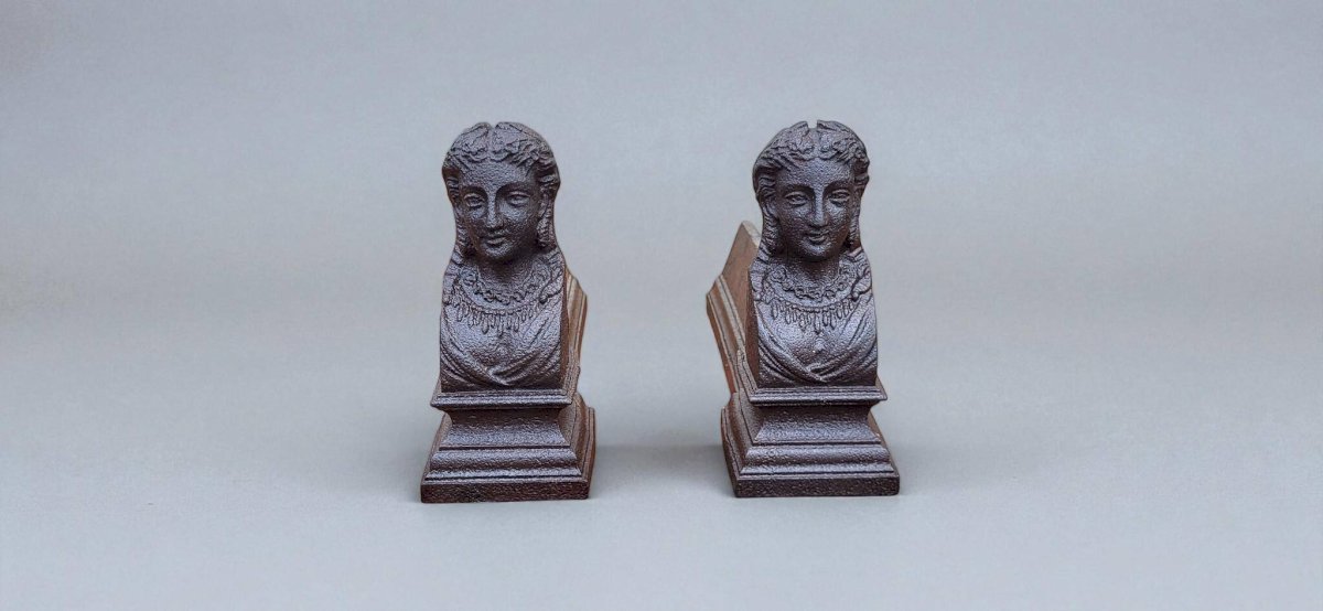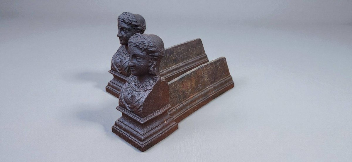 Anciennes paire chenets de cheminée en fonte buste XIX° siècle