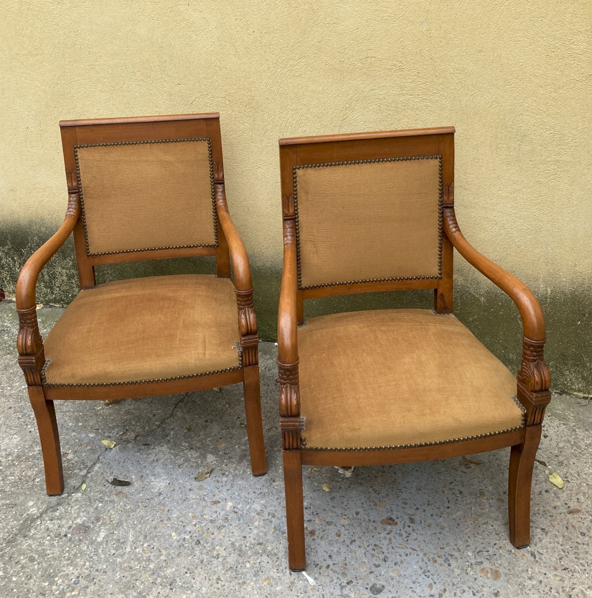 Paire de fauteuils de couleur moutarde , Hauteur totale 89 x P50 x l59, L'assise mesure P46 x l49 x H39. très bon état.