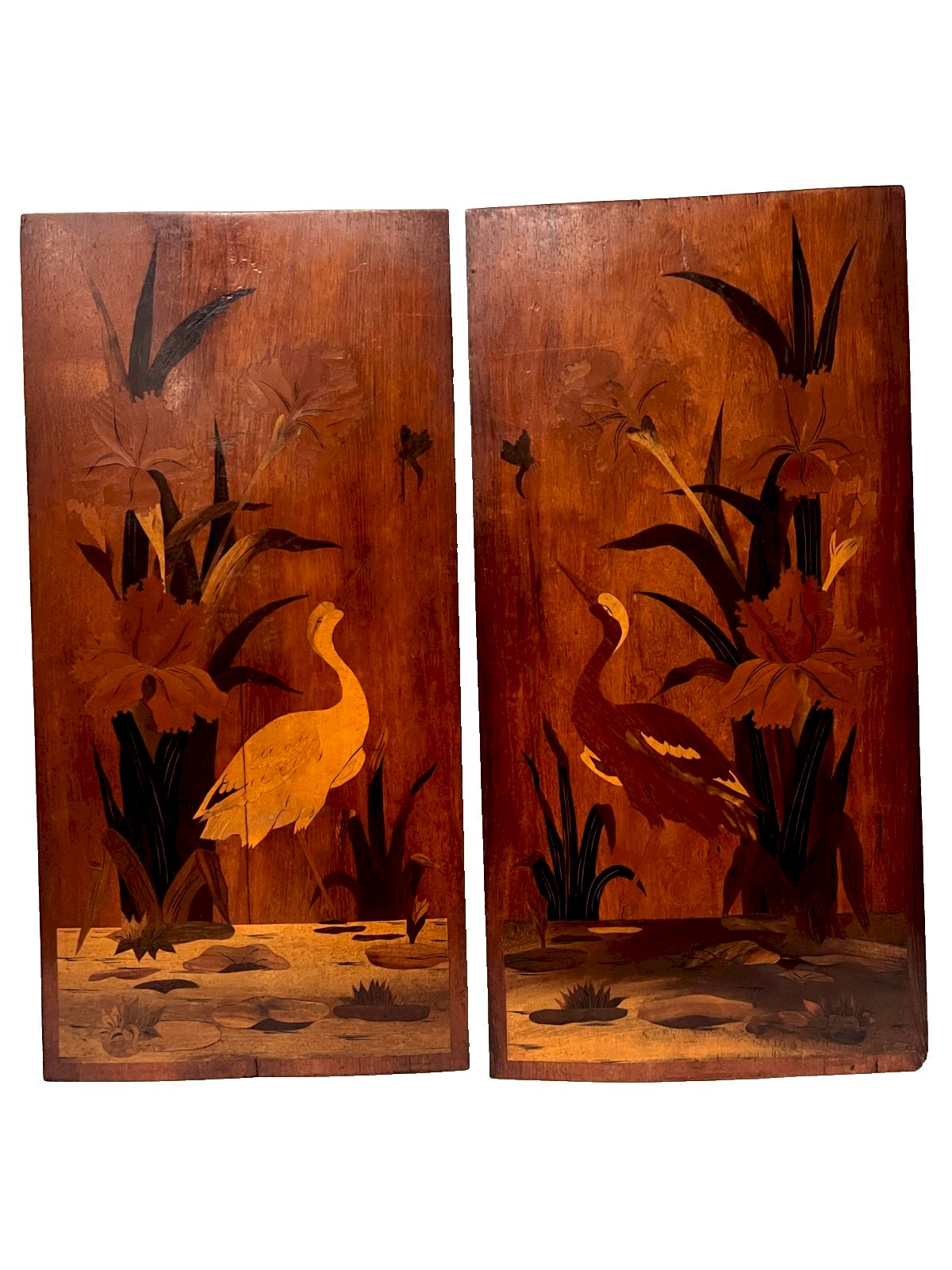 Paire de panneaux en marqueterie Art Nouveau " Ecole de Nancy " XX siècle