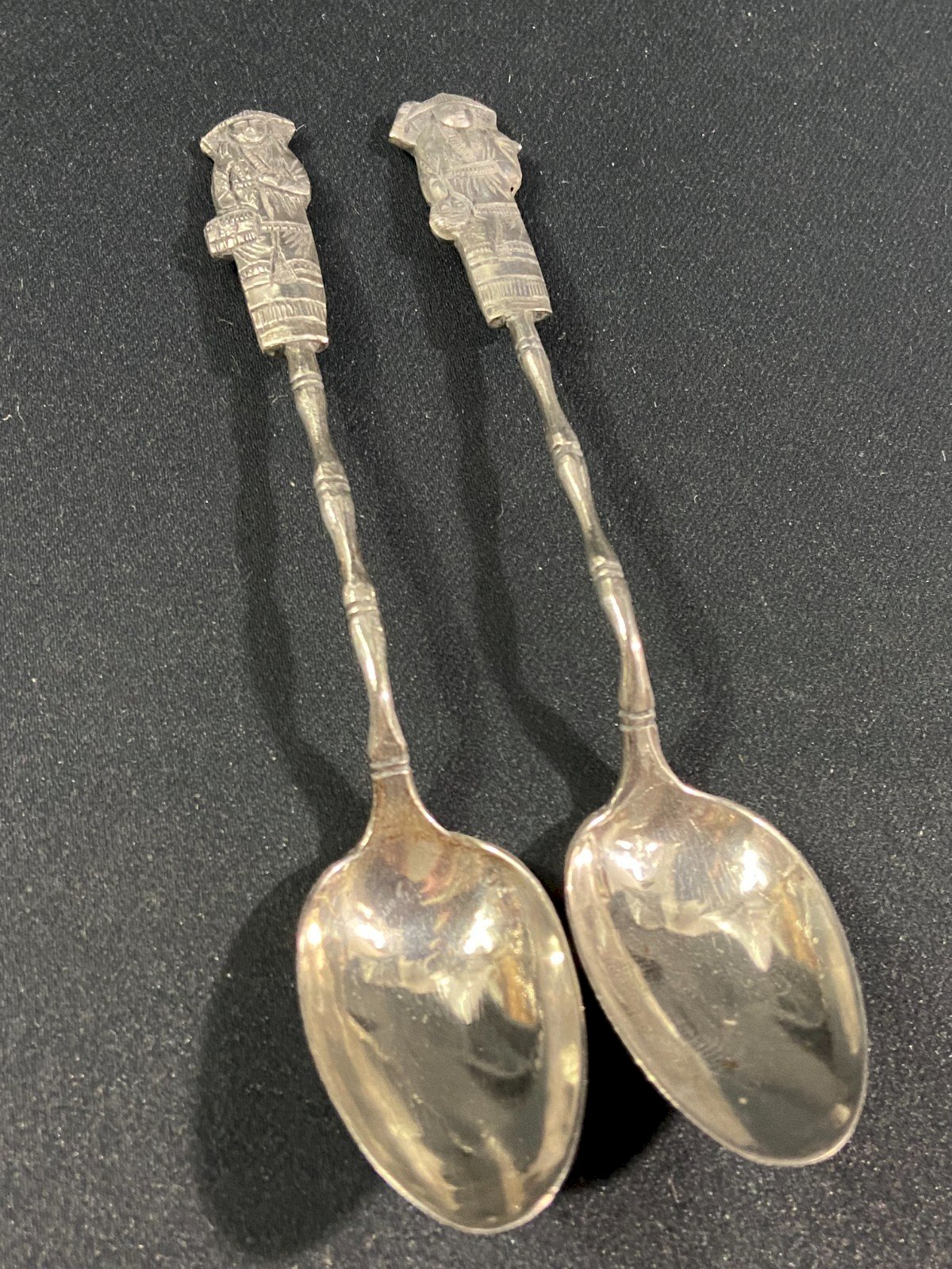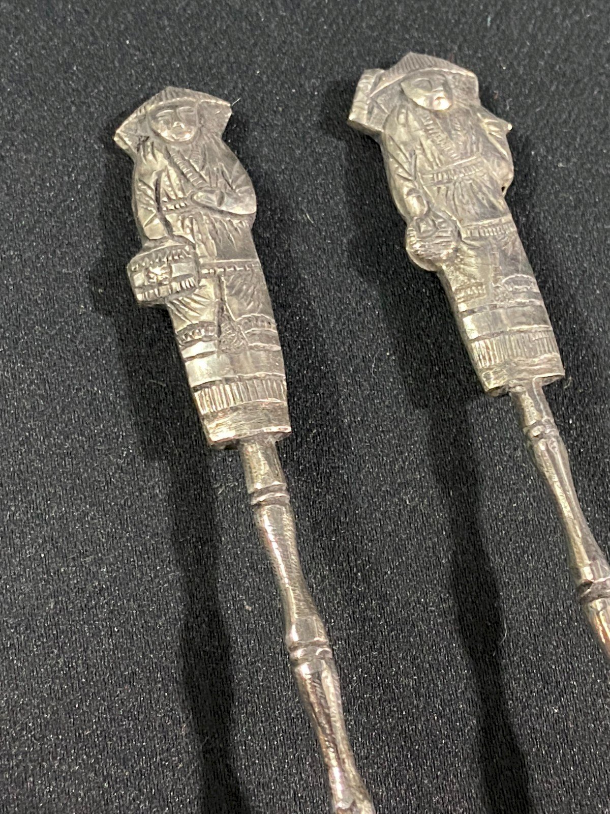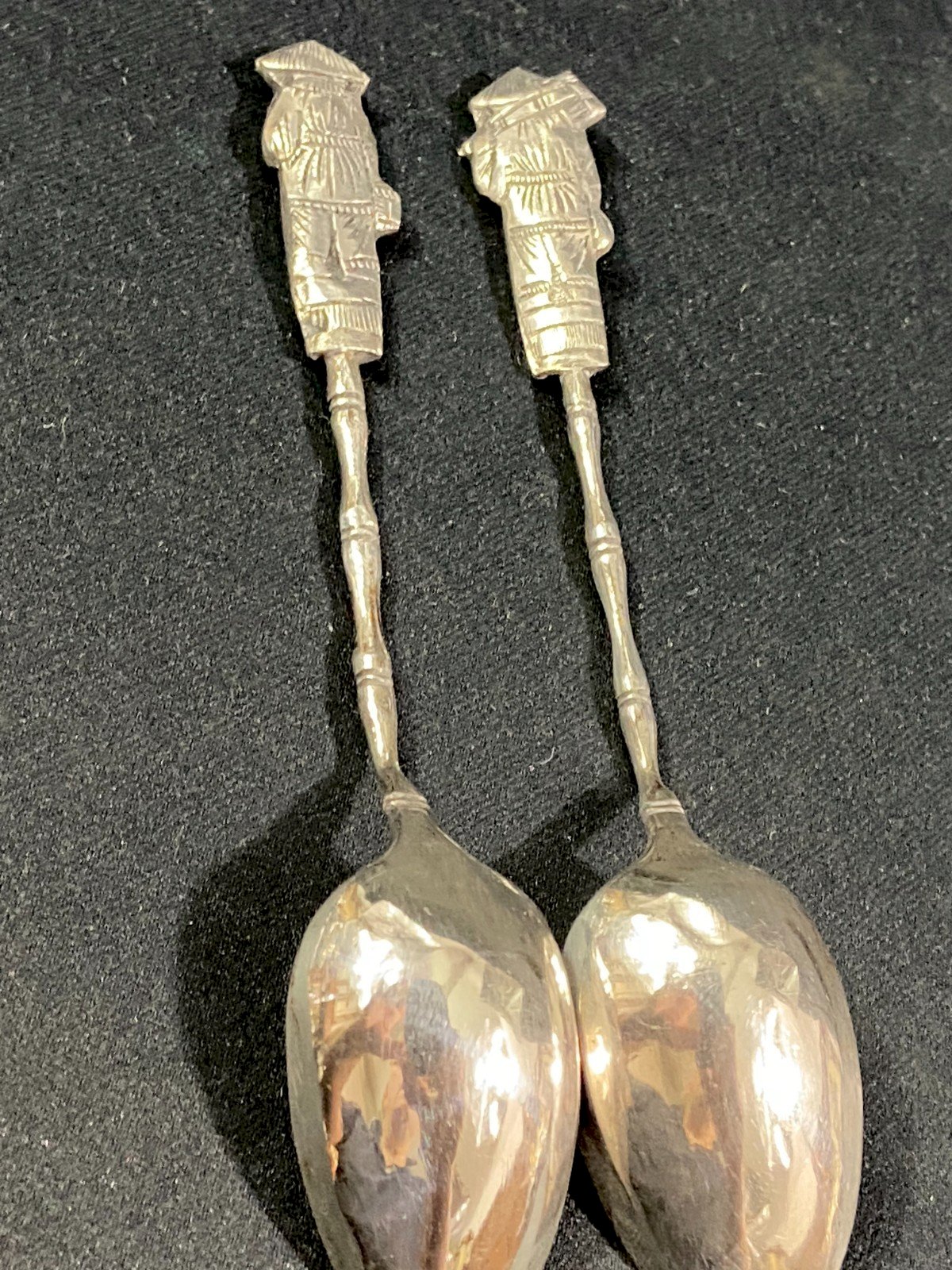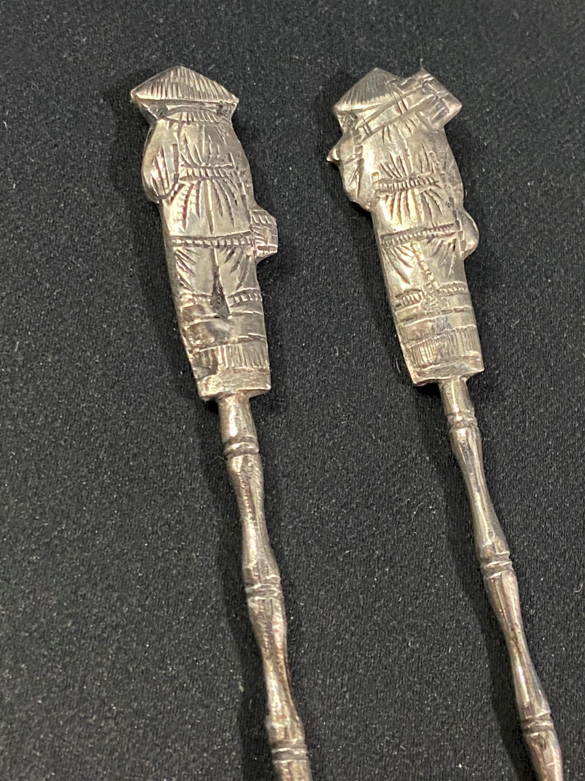 Paire de petites cuillères en argent massif Chine Indochine milieu XXe