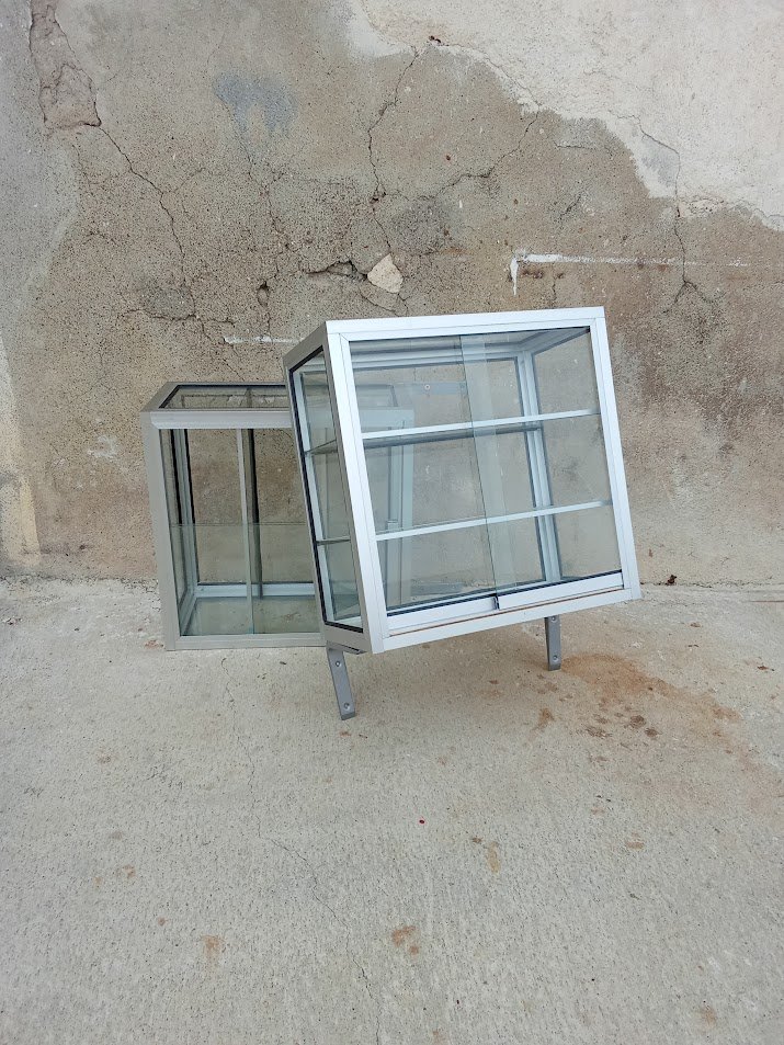 Paire de petites vitrines. idéal pour l'agencement d'une boutique ou un collectionneur