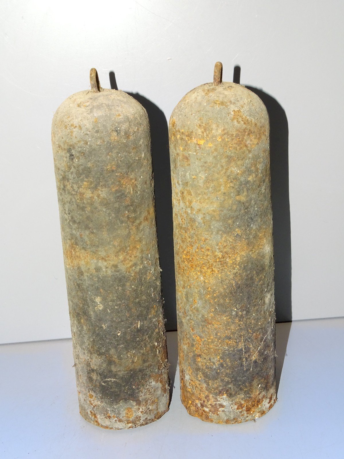 PAIRE de POIDS pour Horloge pendule COMTOISE MENSUELLE XVIIIe - Poids Mensuels - dans leur jus de trouvailles - rouille superficielle - à nettoyer ( voir photos )  - Réf. 1V240718/317 - Hauteur 29,2 et 29 cm -   Poids 8,160 et 8,780 kg     EXPEDITION POSSIBLE EN MONDIAL RELAY ou COLISSIMO sur demande TRES BON EMBALLAGE GARANTI                                                                                                                                                                                   MERCI de BIEN REGARDER TOUTES les PHOTOS car ELLES FONT PARTIE INTEGRANTE de la DESCRIPTION et PERMETTENT de VOIR l'OBJET AU MIEUX  avec SES PETITS DEFAUTS EVENTUELS - Couleur:Noir Type:Pièce détachée Mécanisme:Comtoise Période:XIXème et avant Sous-type:Poids Matière:Métal
