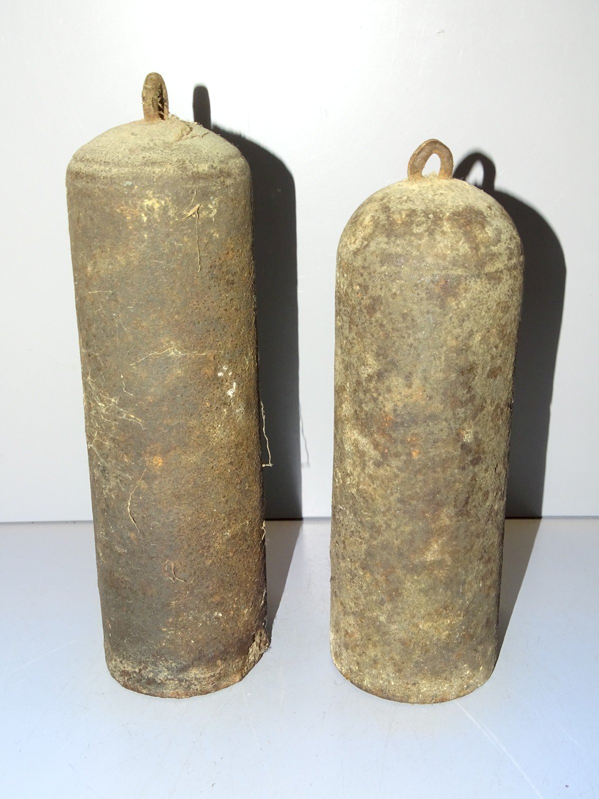 PAIRE de POIDS pour Horloge pendule COMTOISE MENSUELLE XVIIIe - Poids Mensuels - dans leur jus de trouvailles - rouille superficielle - à nettoyer ( voir photos )  - Réf. 1V240718/318 - Hauteur 26,7 et 24,2 cm -   Poids7,7 et 6,8 kg     EXPEDITION POSSIBLE EN MONDIAL RELAY ou COLISSIMO sur demande TRES BON EMBALLAGE GARANTI                                                                                                                                                                                   MERCI de BIEN REGARDER TOUTES les PHOTOS car ELLES FONT PARTIE INTEGRANTE de la DESCRIPTION et PERMETTENT de VOIR l'OBJET AU MIEUX  avec SES PETITS DEFAUTS EVENTUELS - Couleur:Noir Type:Pièce détachée Mécanisme:Comtoise Période:XIXème et avant Sous-type:Poids Matière:Métal