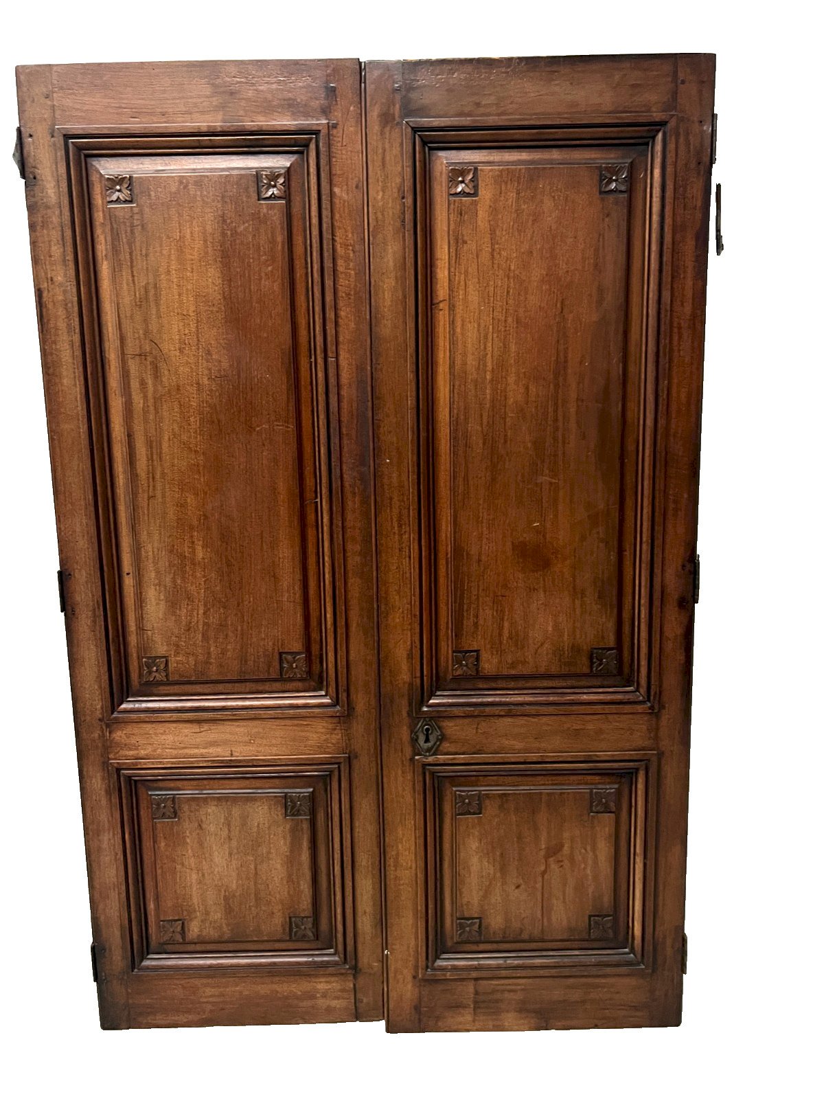 Paire de portes de placard en noyer massif Portes a deux panneaux a encadrement mouluré  La Clé et la serrure ancienne sont présentes Bon état  Dimension  H 160 x L 104 x 2 cm  Epoque XVIII siècle  Type:Porte Période:XIXème et avant Pays d'origine:France Matière:noyer