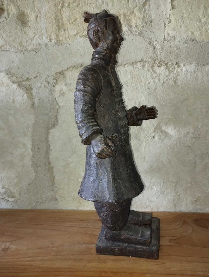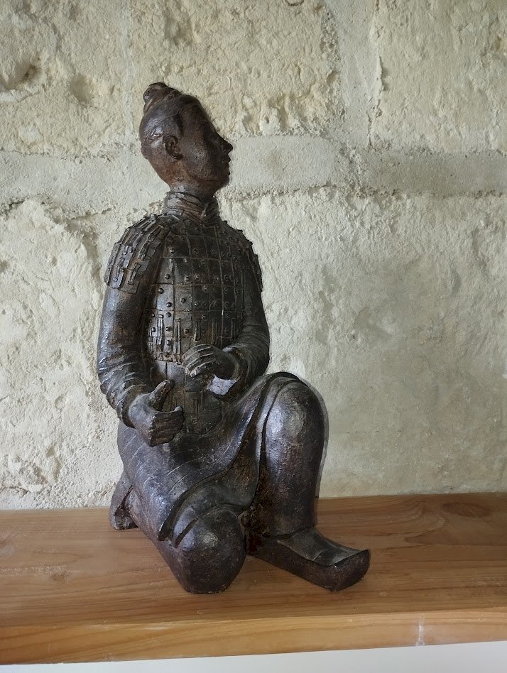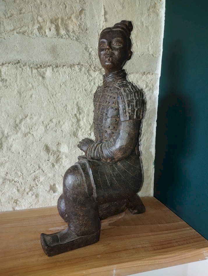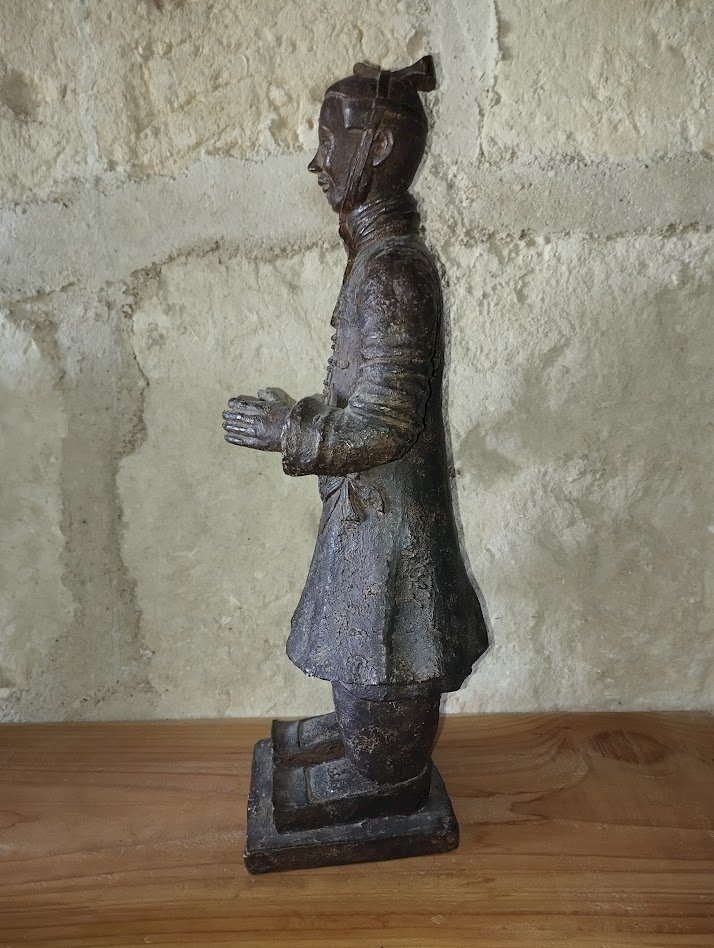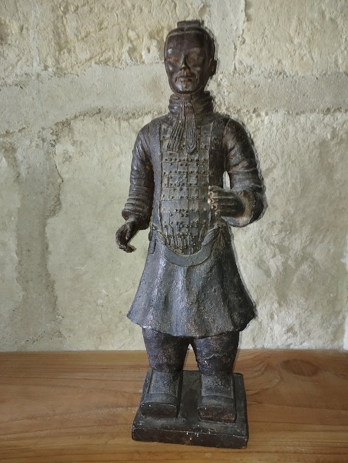 Paire de statues décoratives inspirées des guerriers de Xi’an – Résine patinée – Grand
