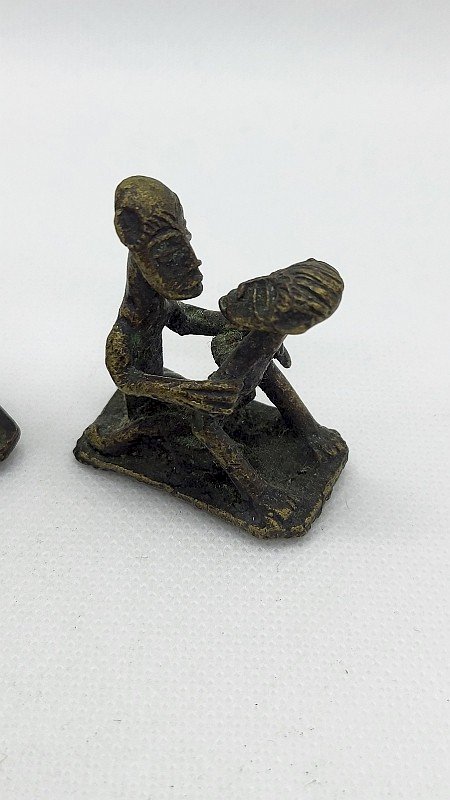 jolie paire de statuettes érotiques en bronze africain de petites tailles elles sont en bon état elles mesurent 4.2 cm de haut sur 2 cm de large et 3 cm de profondeur Type:Figurine, Statue Origine:Afrique Matière:Bronze Pays d'origine:France