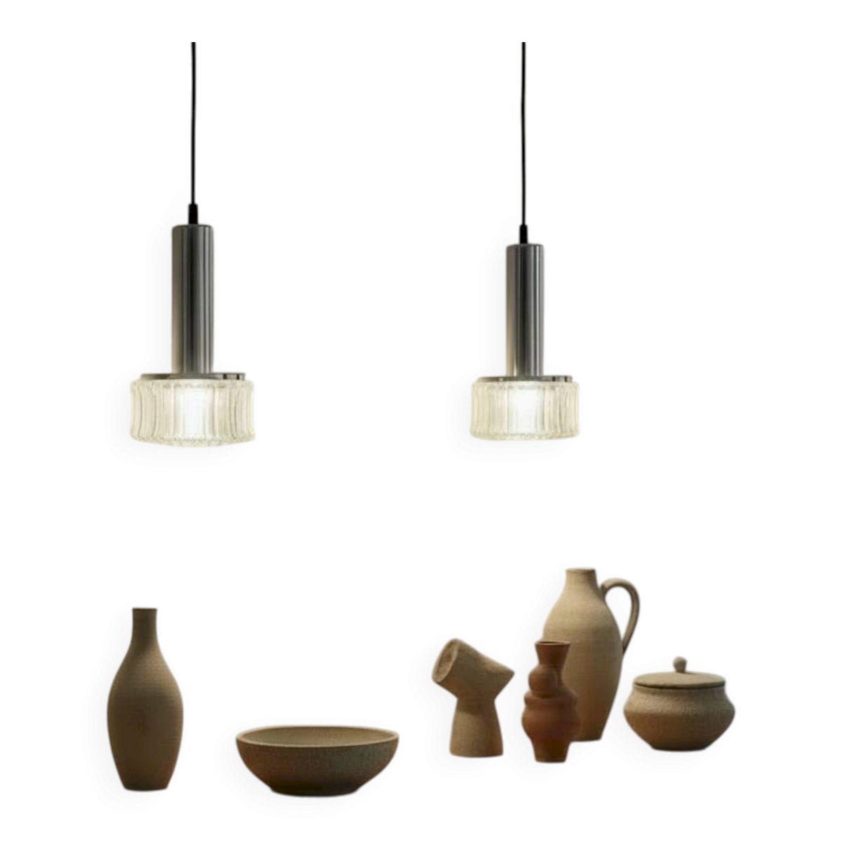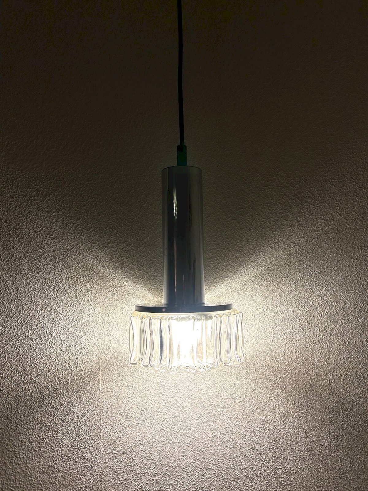 Paire de suspension industrielle en verre cannelé, sablé, type holophane