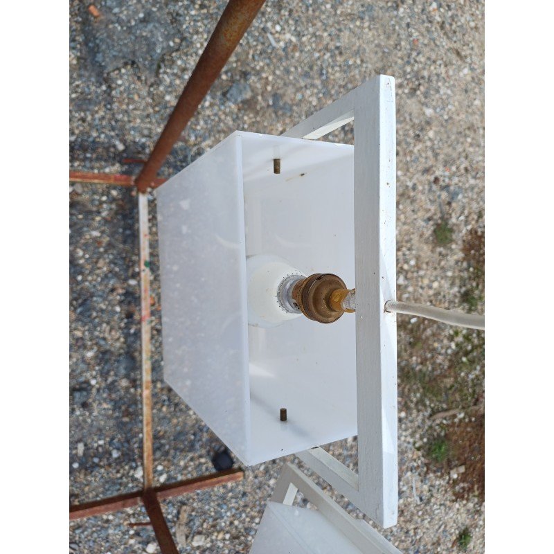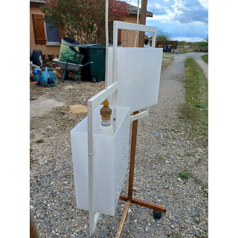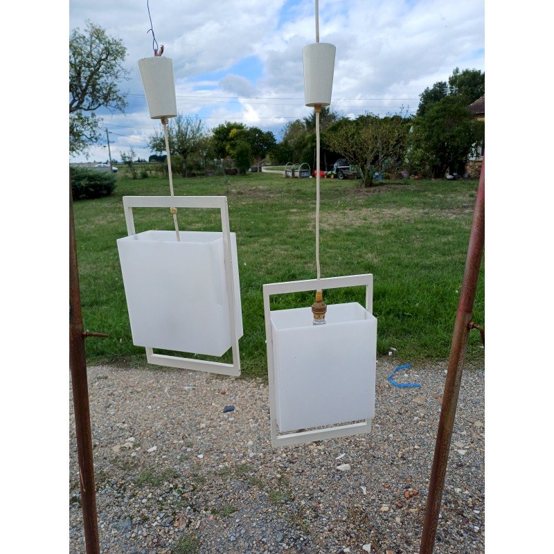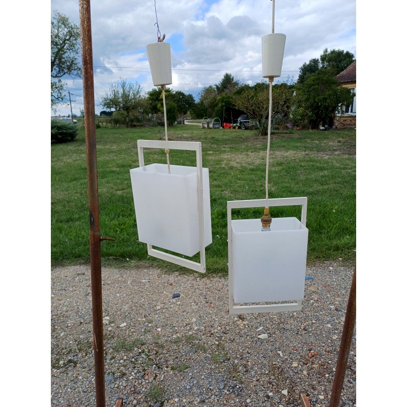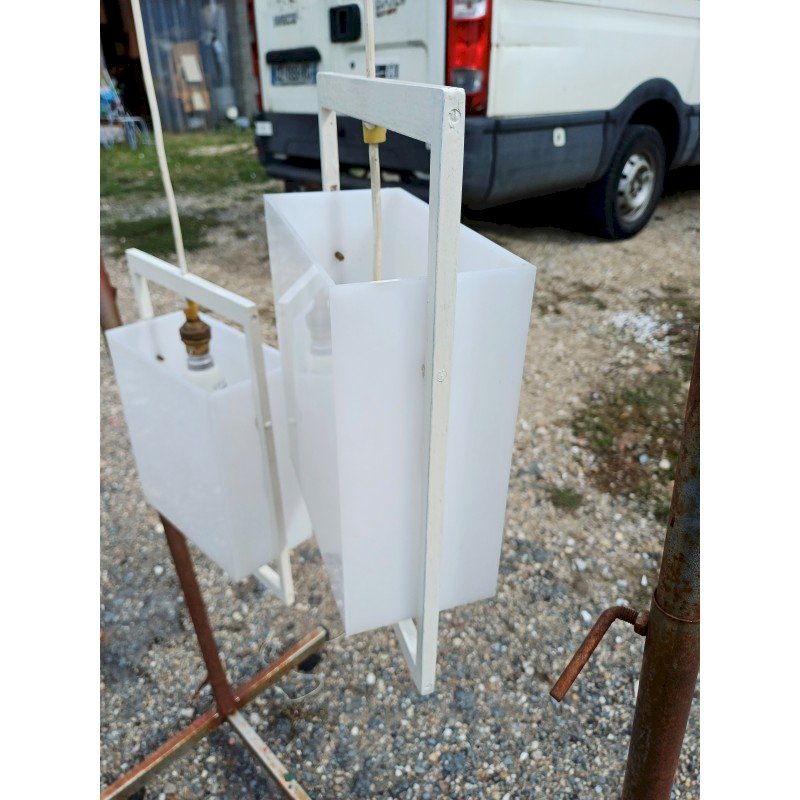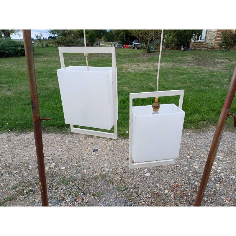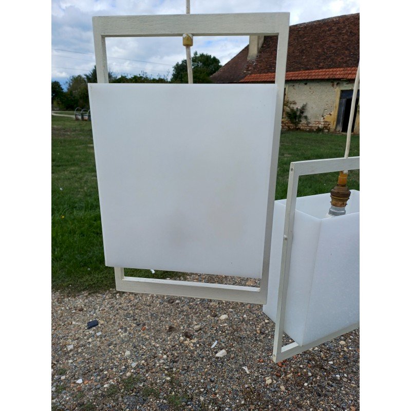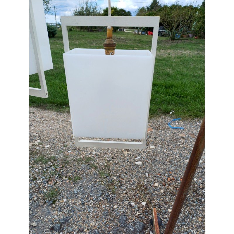 Paire de suspensions Vintage des Années 70 , Bois et Plastic Translucide Opalin Blanc , Haut : 36 cm , long et larg : 22 cm sur 10 cm , Poids : 1,8 Kg , trés bon ètat