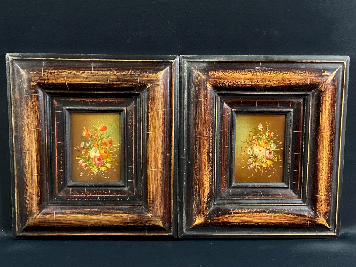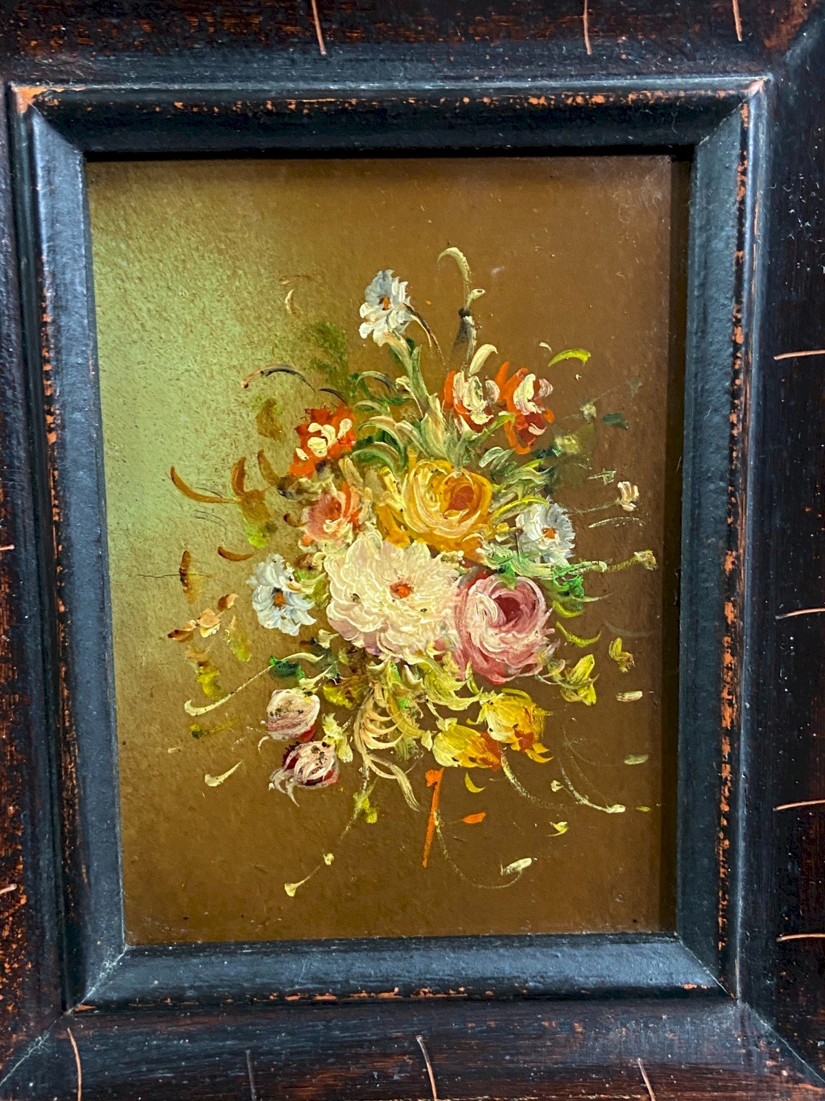 Paire de tableaux huile sur cuivre Nature morte aux bouquets de fleurs