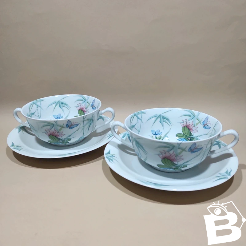 Paire de tasses à bouillon en porcelaine de Limoges, Georges Boyer.