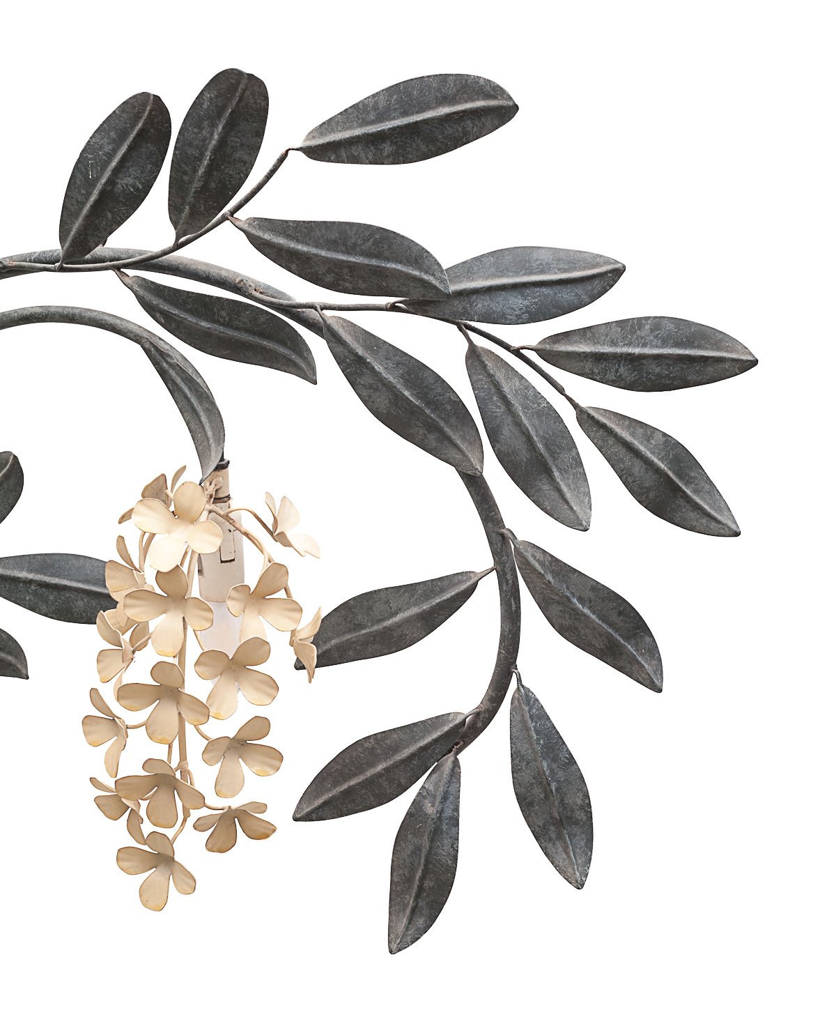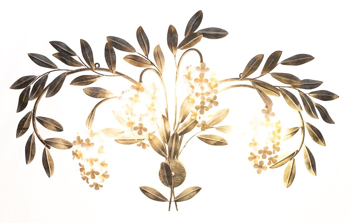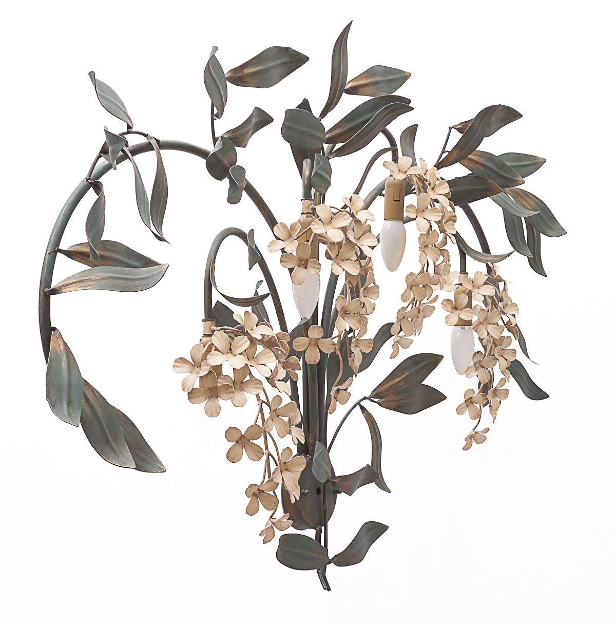 Paire de très grandes appliques Vintage Blanc/Vert Fer Floral,Végétal