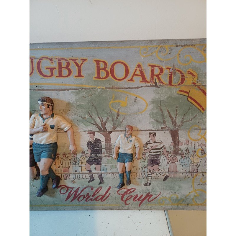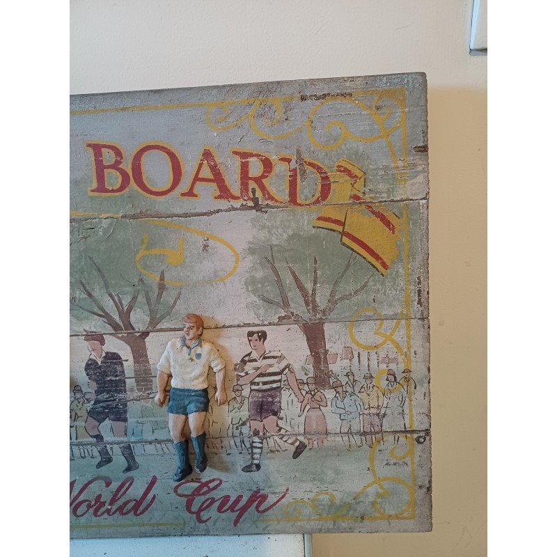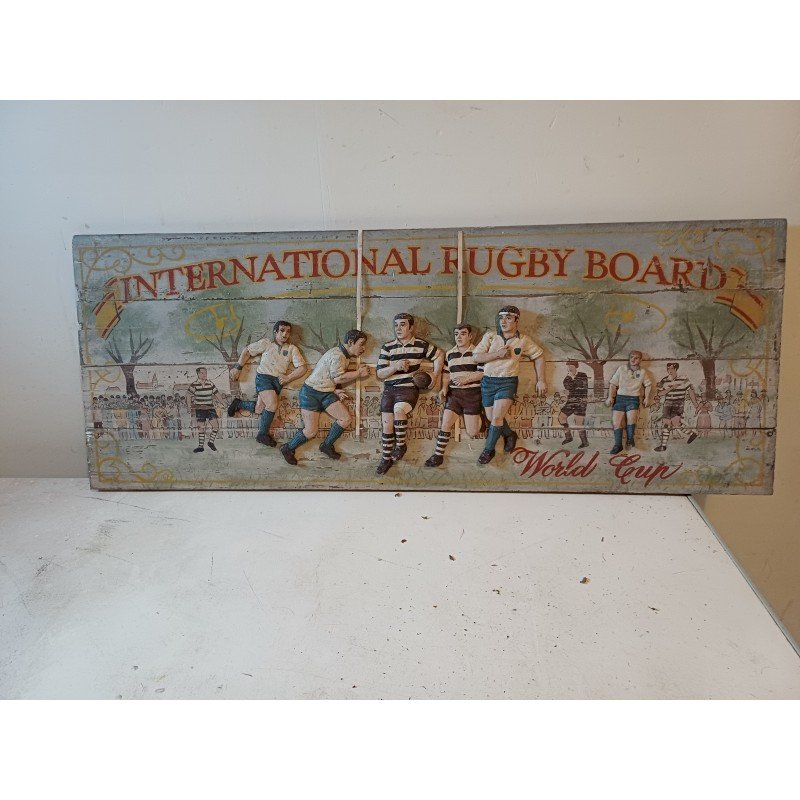 Panneau Bois International Rugby Board World Cup , Haut : 33 cm long et larg : 85 cm sur 3 cm , poids : 2 Kg , très bon état