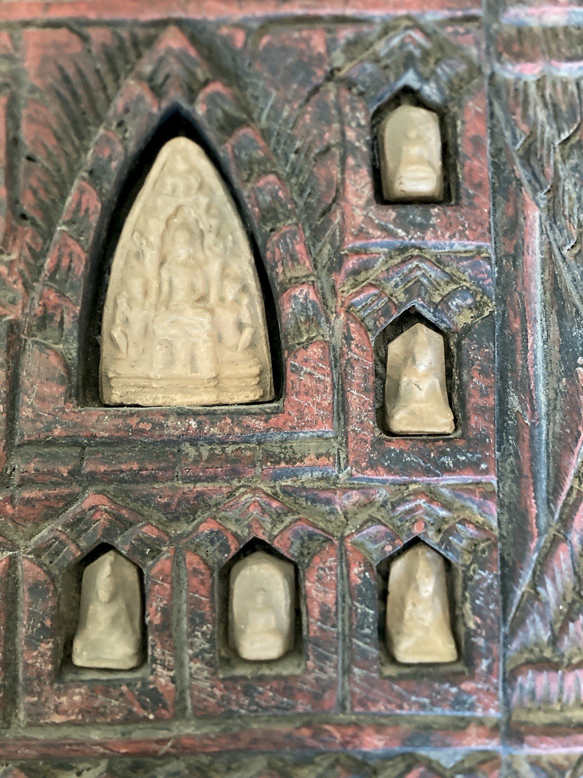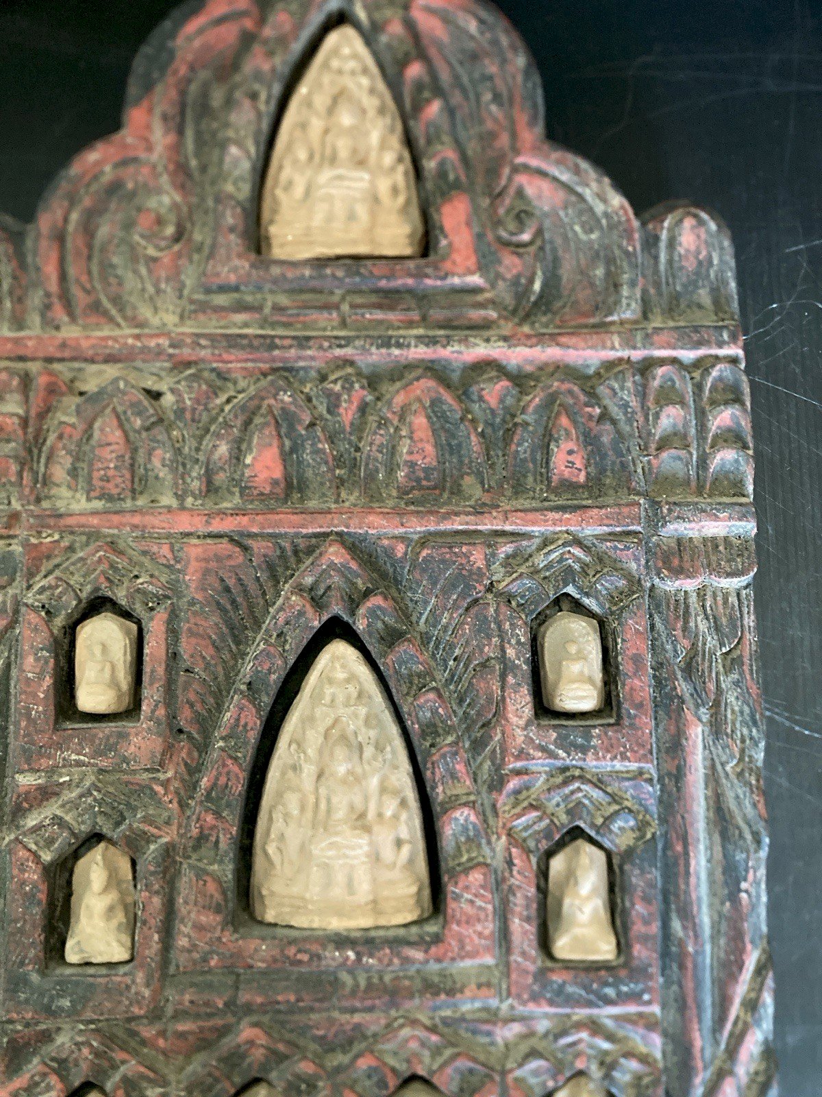 Panneau mural en Bois Sculpté boudha terre cuite indou inde croyance religion