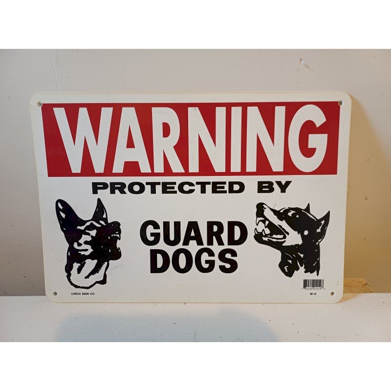 Panneau Plastic Dur Warning Guard Dogs , Haut : 25 cm , long et larg : 35,5 cm sur 0,5 cm , très bon ètat