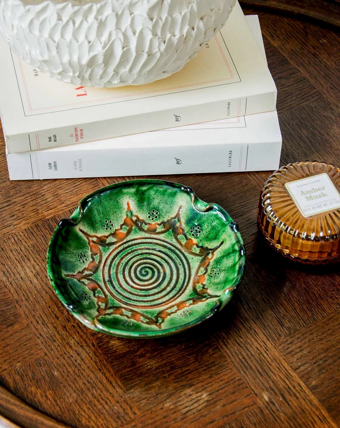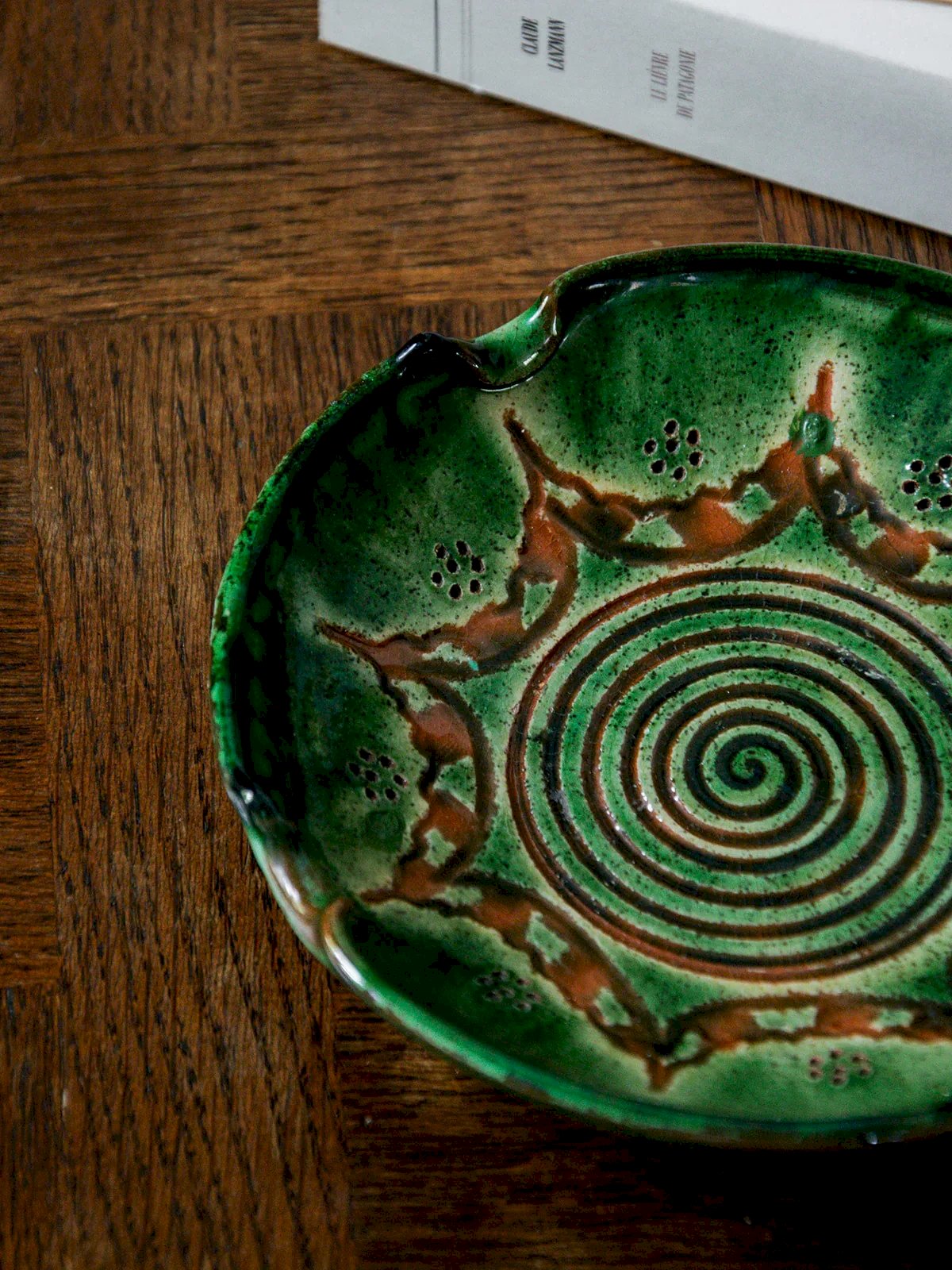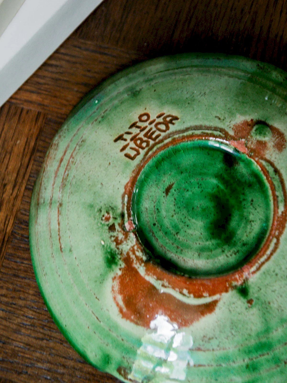 Découvrez ce cendrier vert en céramique, signé Tito Ubeda, un véritable objet d’art à collectionner. Son design unique et sa couleur intense apportent une touche rétro élégante à tout espace. Idéal pour les amateurs d’objets vintage ou pour une décoration originale. Compact et pratique, il se glisse facilement sur une table ou un bureau. Un bel équilibre entre utilité et esthétique. Hauteur : 4 cm Diamètre : 15 cm État:Occasion: Objet ayant été utilisé. Objet présentant quelques marques d'usure superficielle, ...Occasion: Objet ayant été utilisé. Objet présentant quelques marques d'usure superficielle, entièrement opérationnel et fonctionnant correctement. Il peut s'agir d'un modèle de démonstration ou d'un objet retourné en magasin après une courte période d'utilisation. les éventuelles imperfections. Marque:Debongout Type:Produit chiné Matériau:Céramique Style:Contemporain