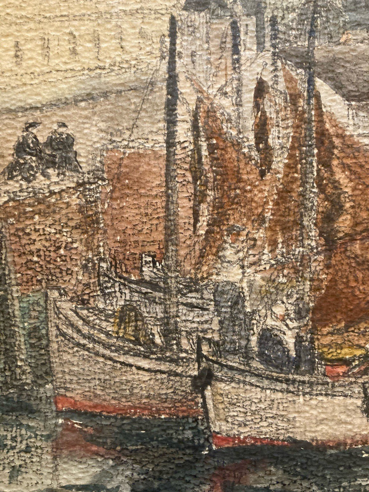Peinture 1950 Aquarelle Papier Paysage Breton Bretagne Océan Bateau Port