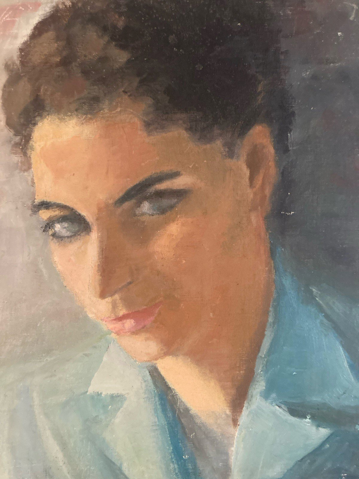 Peinture 1950 Huile Sur Carton Portrait Femme Impressionnisme Art XXe
