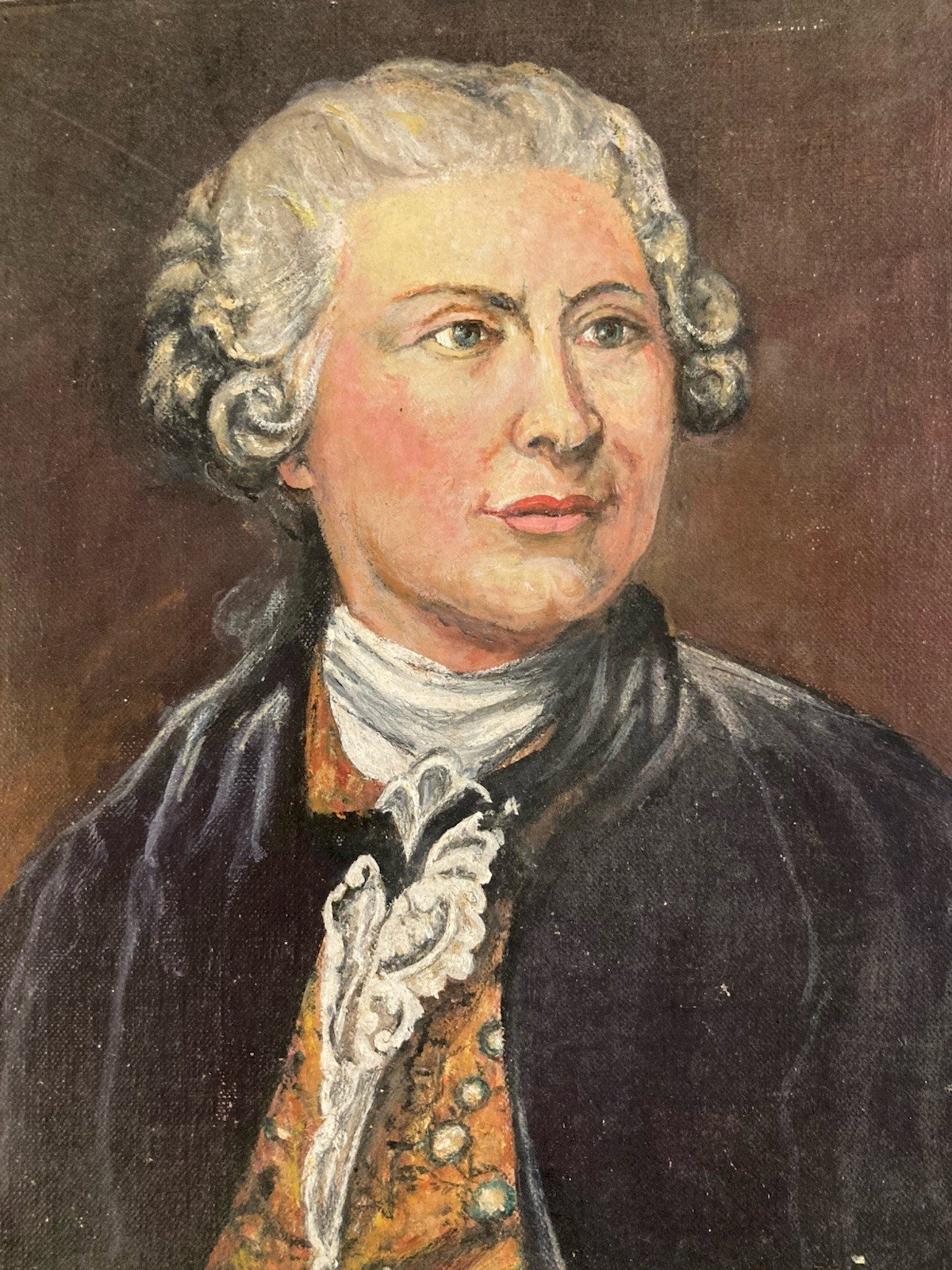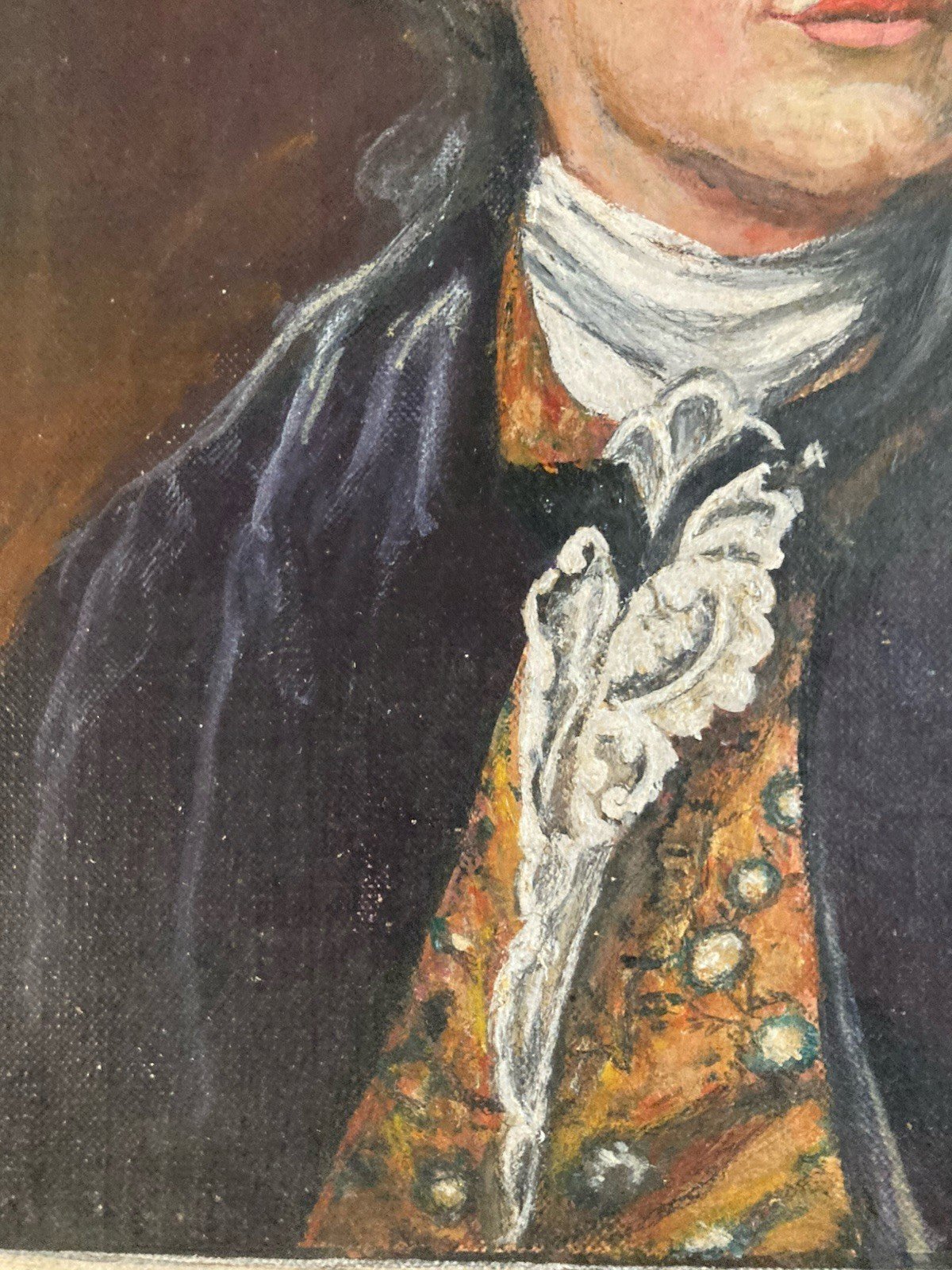 Peinture 1950 Huile Toile Portrait Homme Ancien Diderot Encyclopédie Alembert