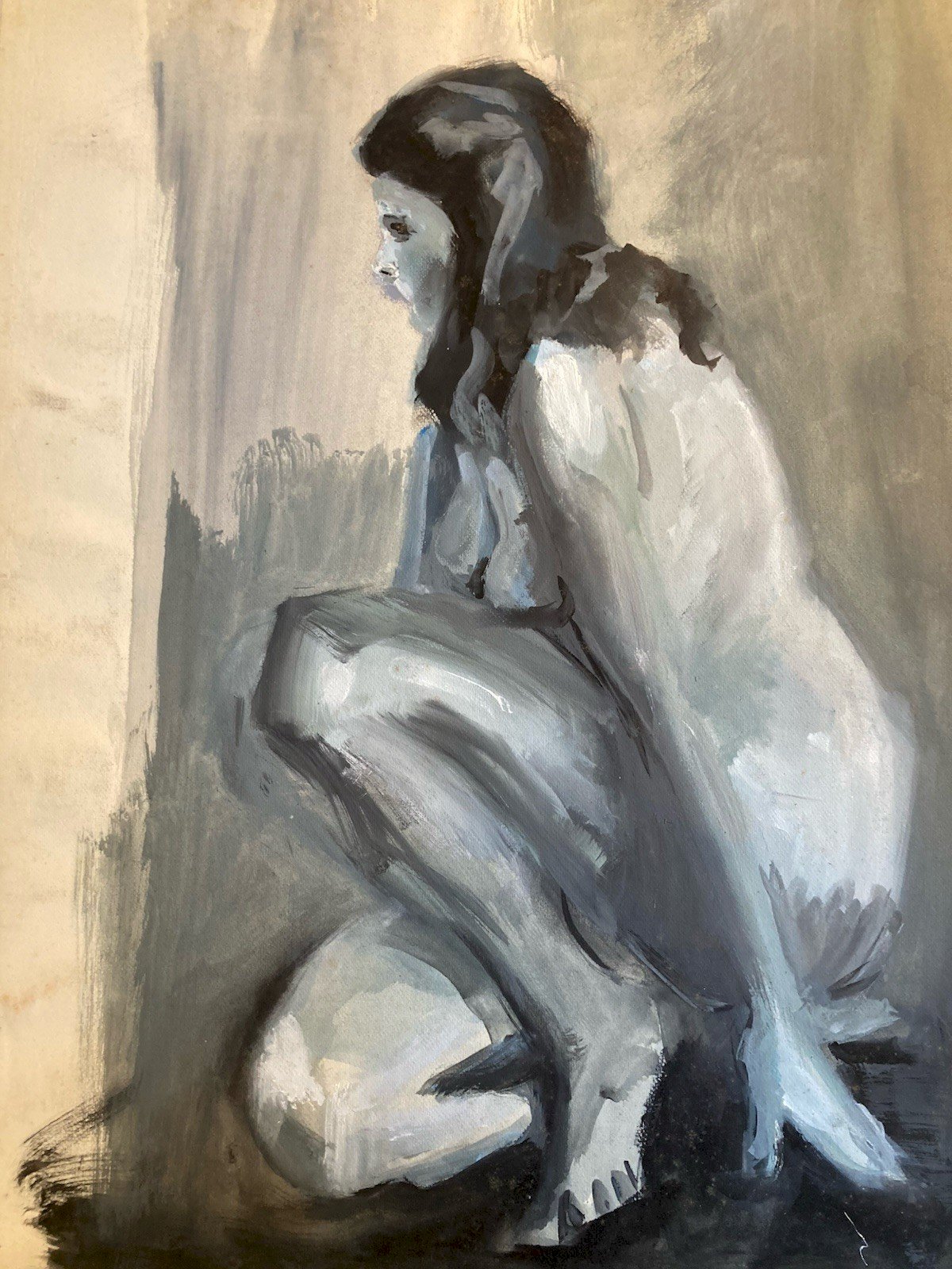 Peinture 1970 Gouache Art Corps Nu Nue Femme Erotique A Identifier